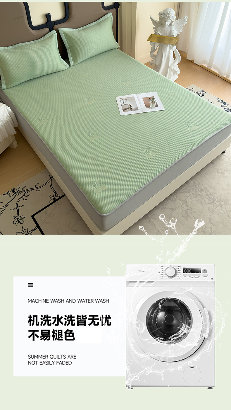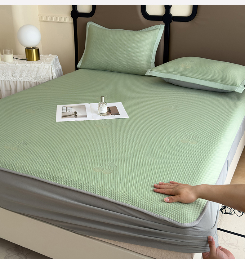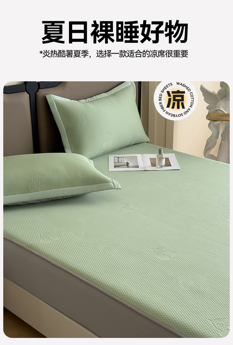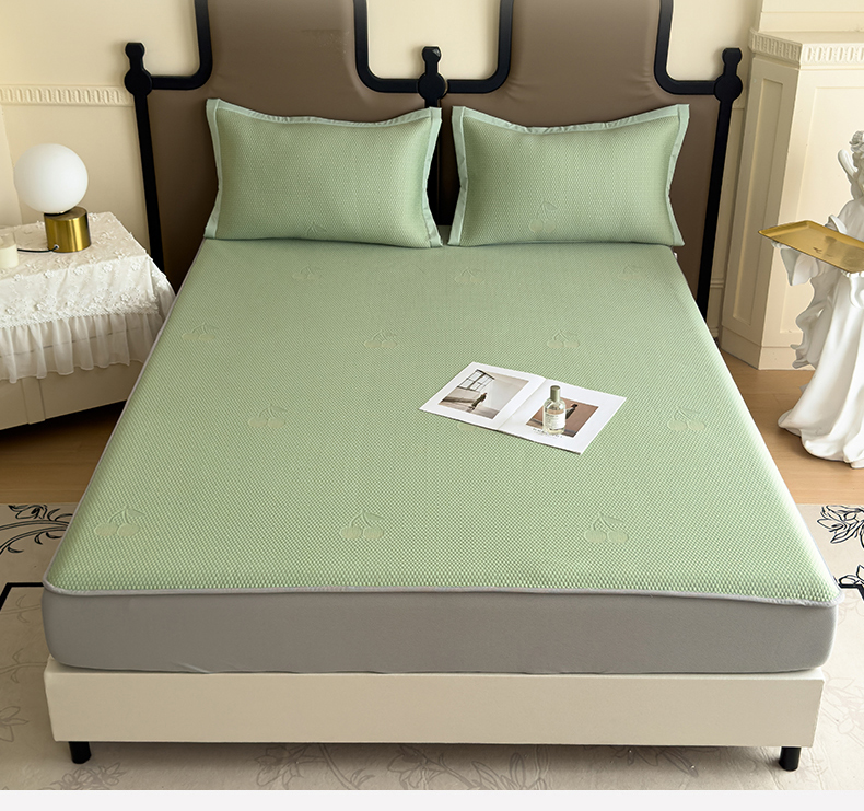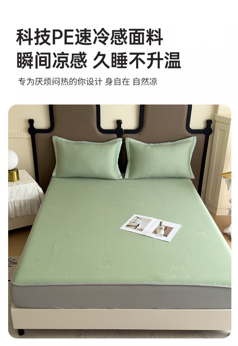 瑞兴纺 2025新款高分子PE软凉席绣花款床笠款 床笠款-樱桃-绿