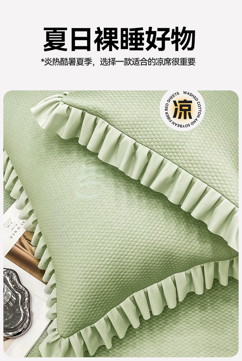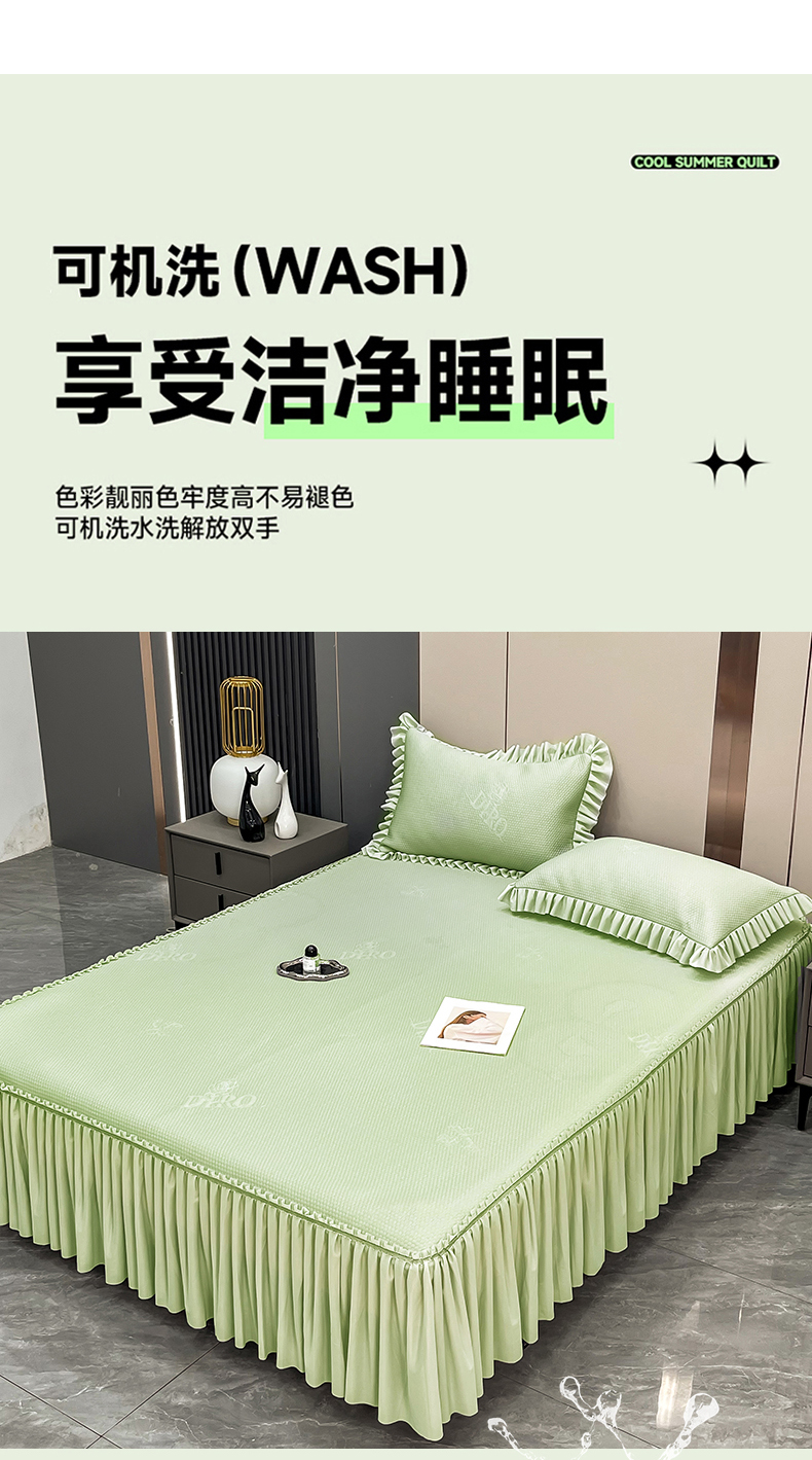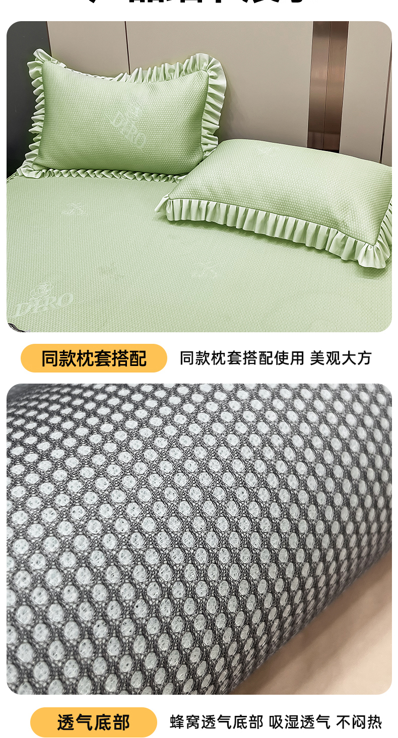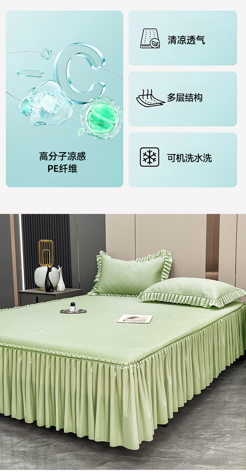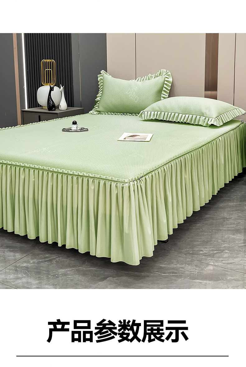 • 91家纺网 家纺一手货源 找家纺 瑞兴纺 2025新款高分子PE软凉席款床裙款 床裙款-玫瑰之恋-绿