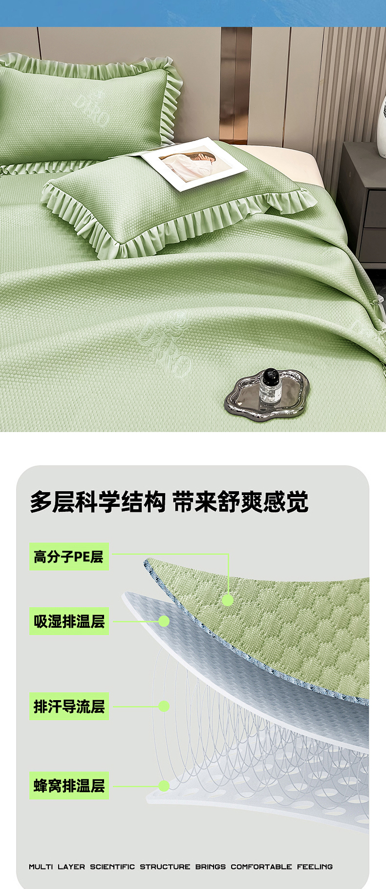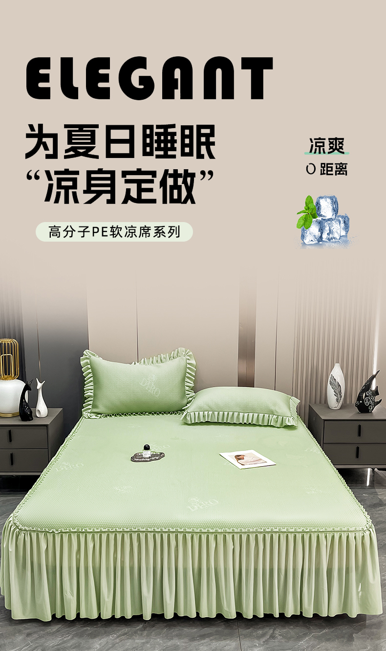 瑞兴纺 2025新款高分子PE软凉席款床裙款 床裙款-玫瑰之恋-绿