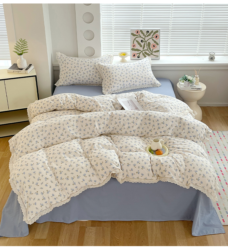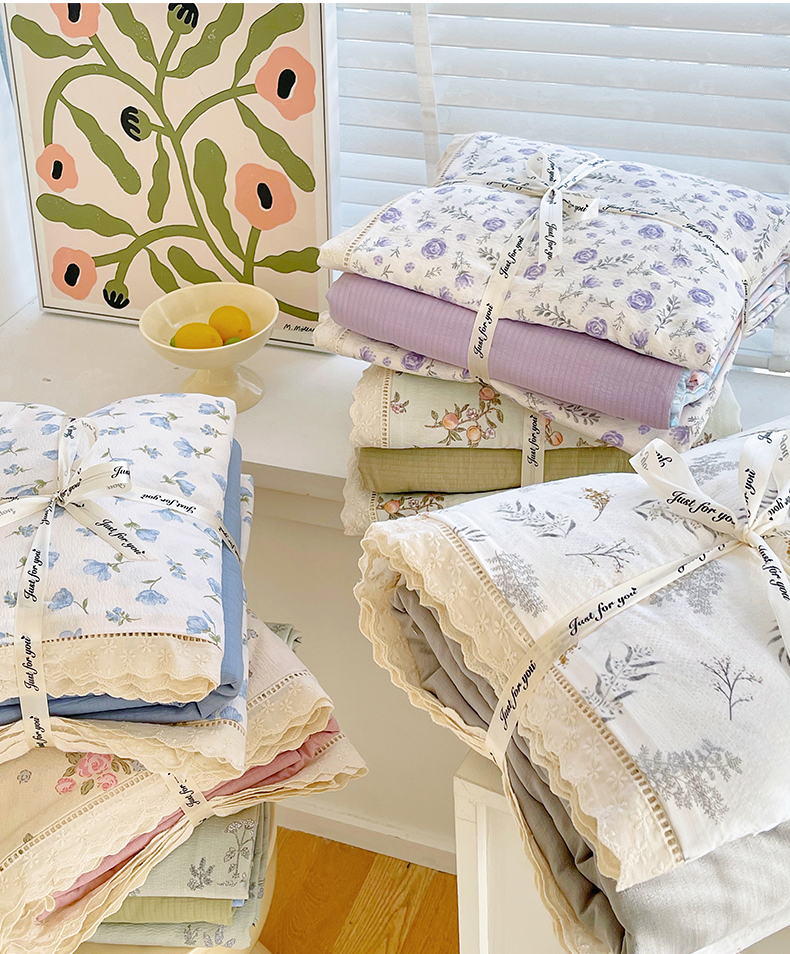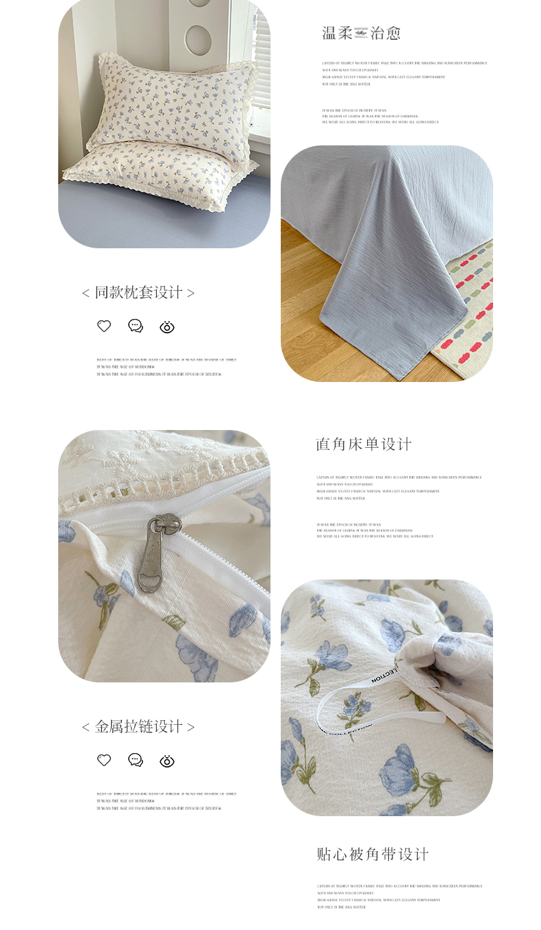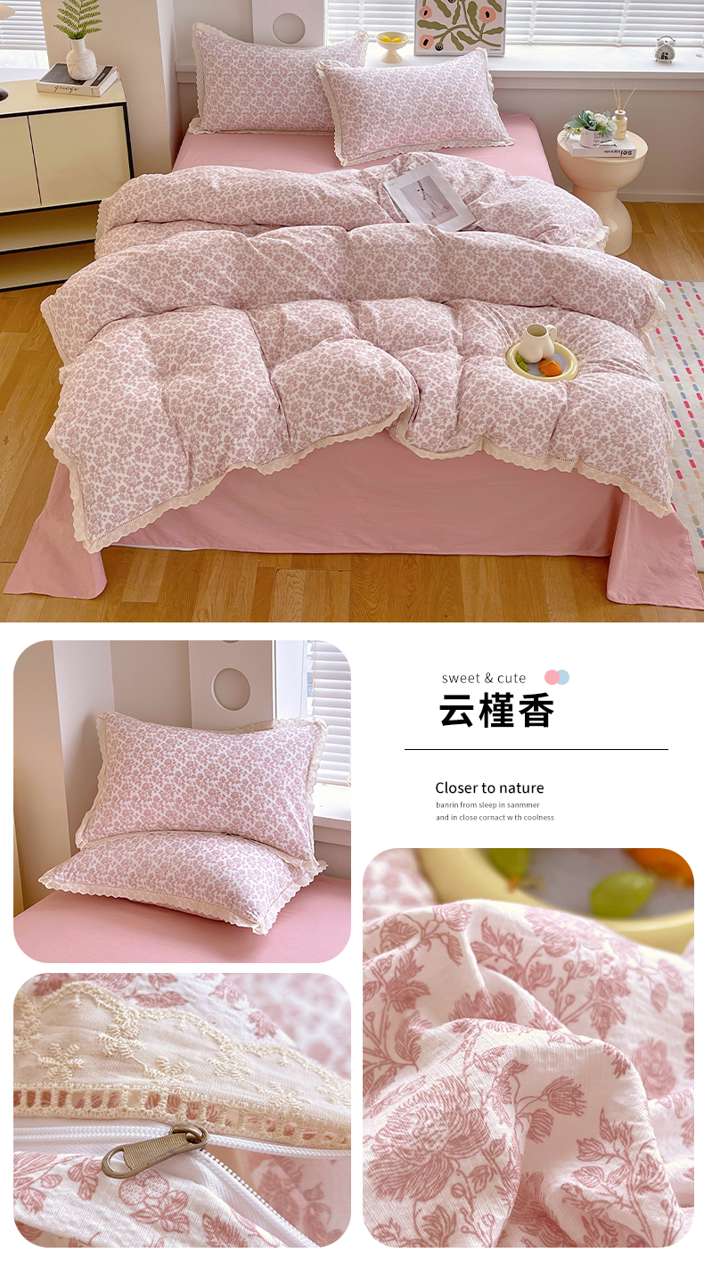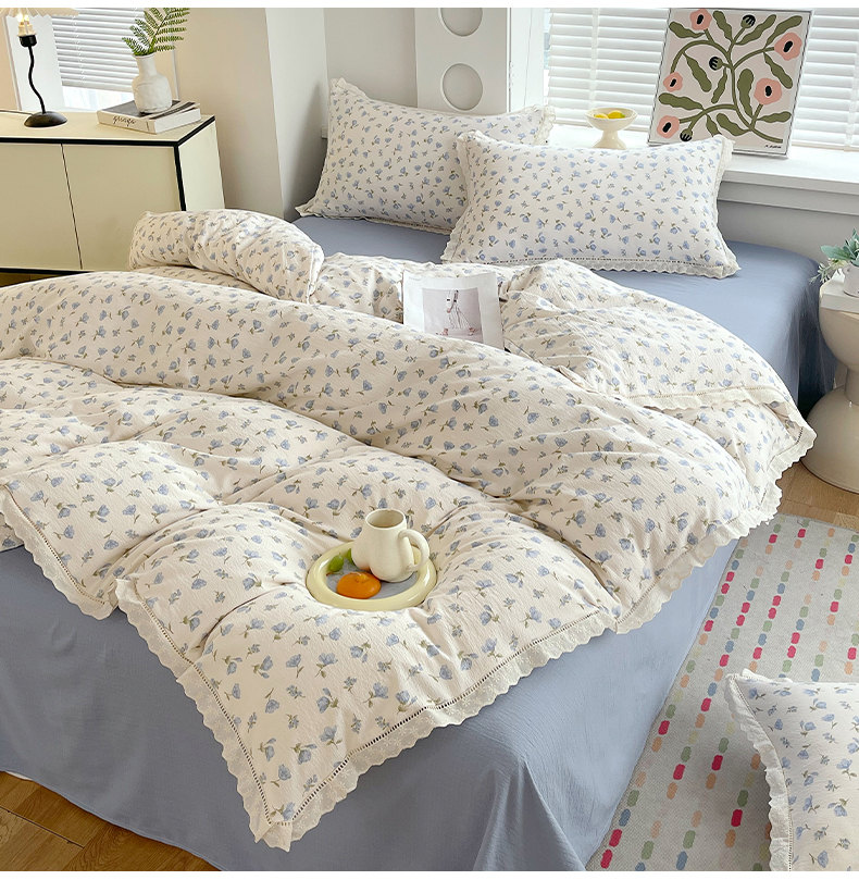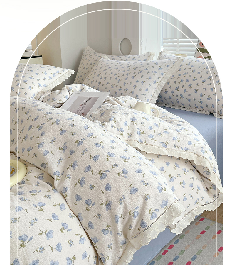 雨彤家纺 2025新款A类高克重云感皱皱双层纱全棉镂空花边款法式四件套-叠拍图 浪漫定义