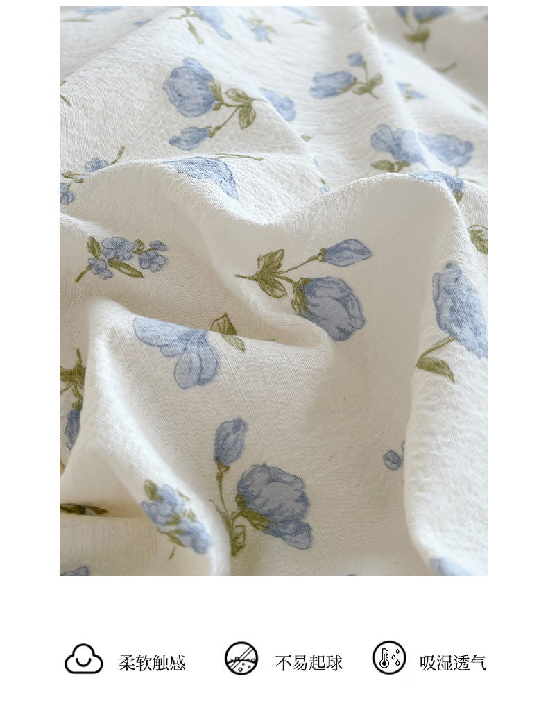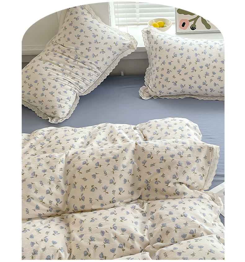 商品名称:雨彤家纺 2025新款A类高克重云感皱皱双层纱全棉镂空花边款法式四件套-叠拍图 浪漫定义