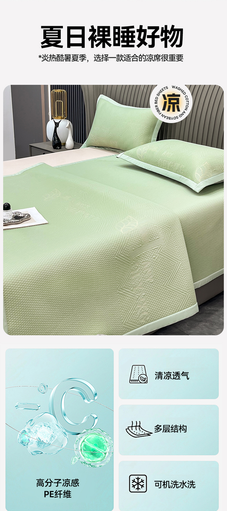 150*200cm凉席三件套
