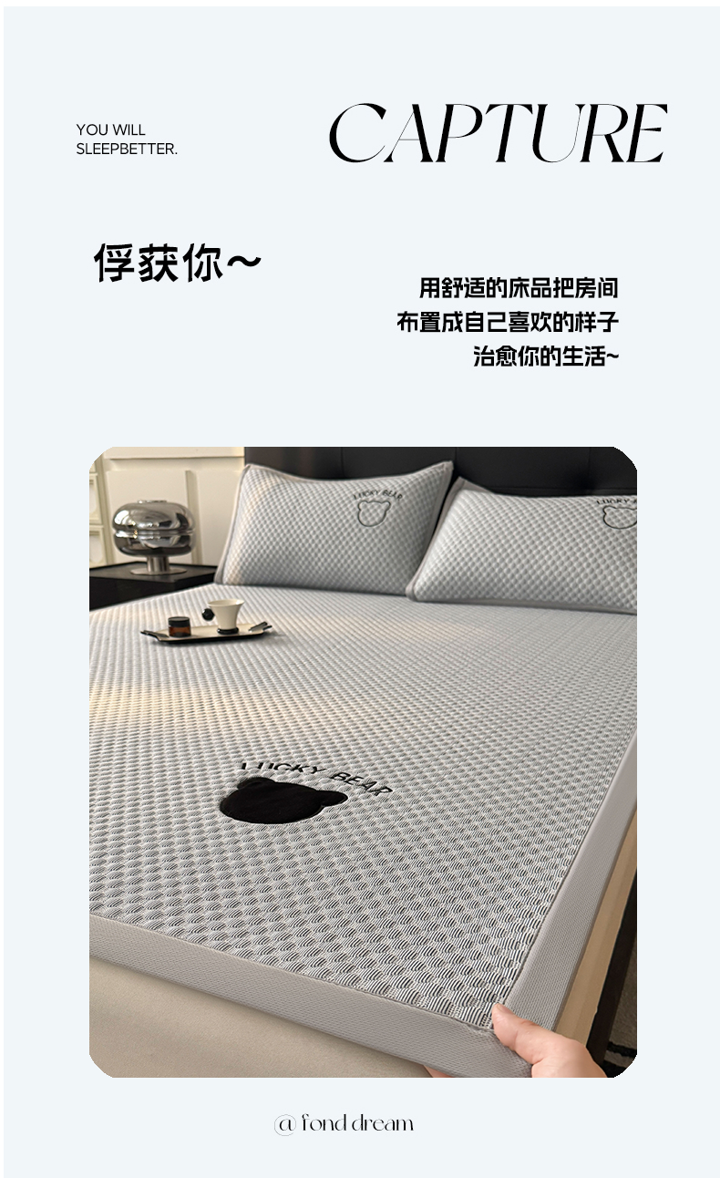 当前位置: 91家纺网 > 商品网购 > 床上用品 > 凉席 > 冰丝席 > 梵朴 2025新款直播贴布刺绣凉感凉豆豆凉席席子三件套空调软席-幸运熊系列 幸运熊-绿