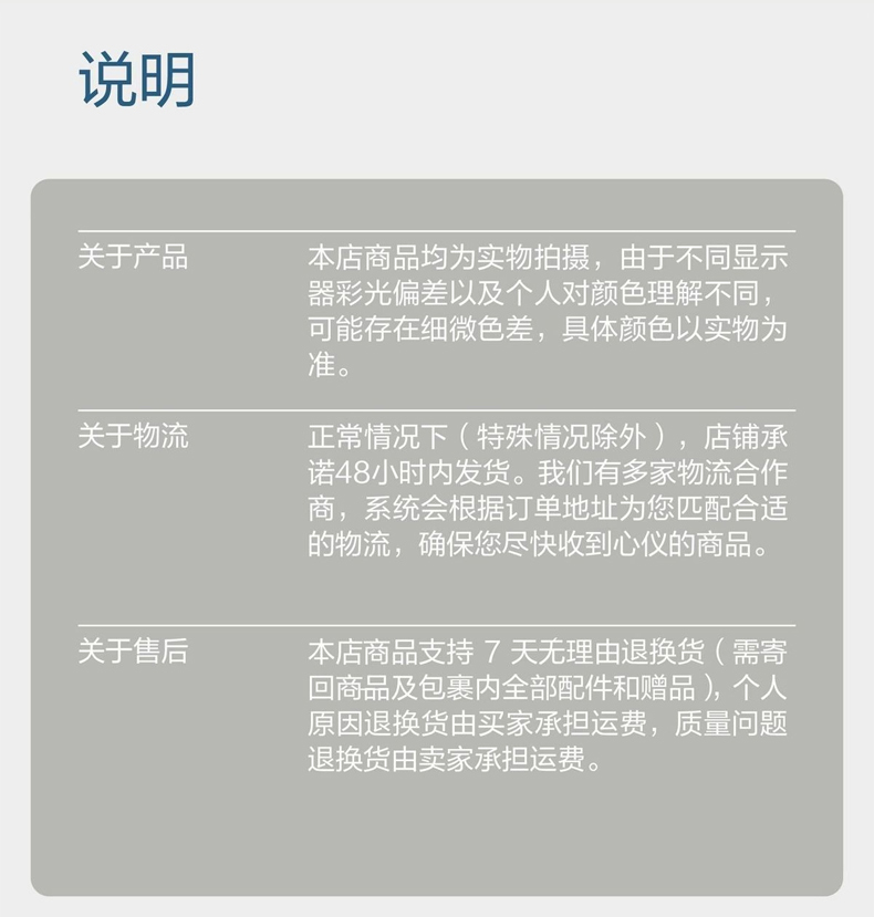 云仓服务3:享急速发货,18点之前下单,2小时内发货,保证发货时效;