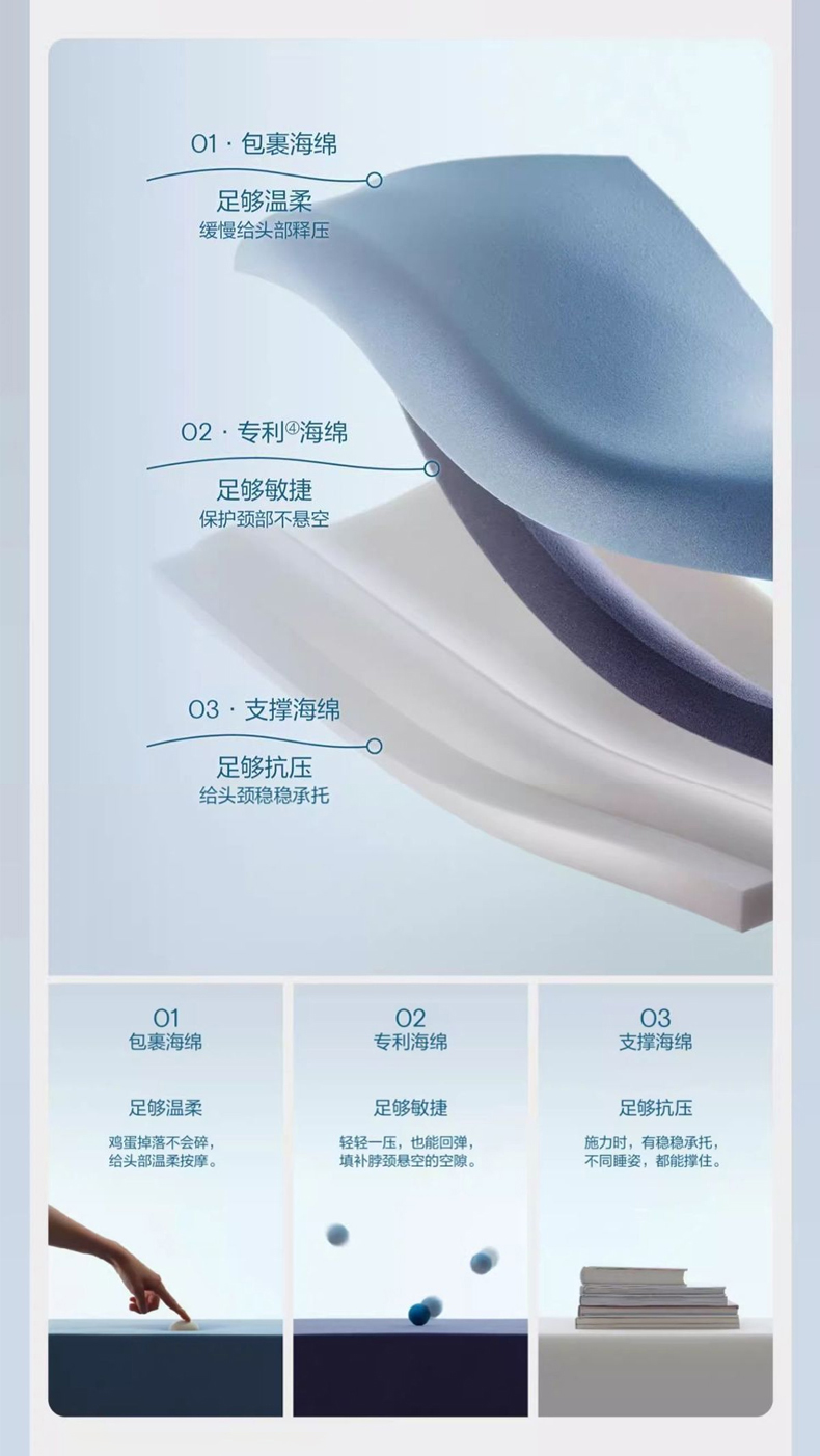 • 91家纺网 家纺一手货源 找家纺 (总)晴朵星球 2025新款深睡枕Pro3枕头护颈椎助睡眠记忆棉枕头枕芯中秋节礼物,浅蓝