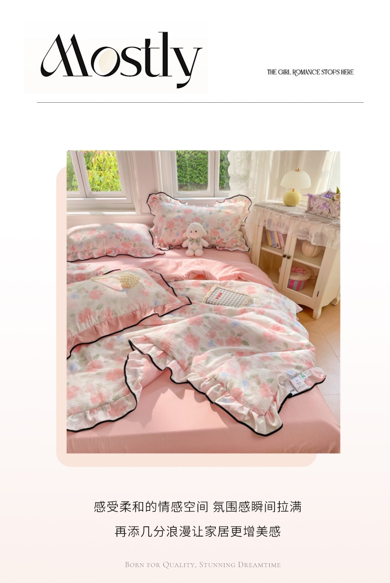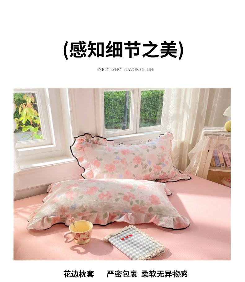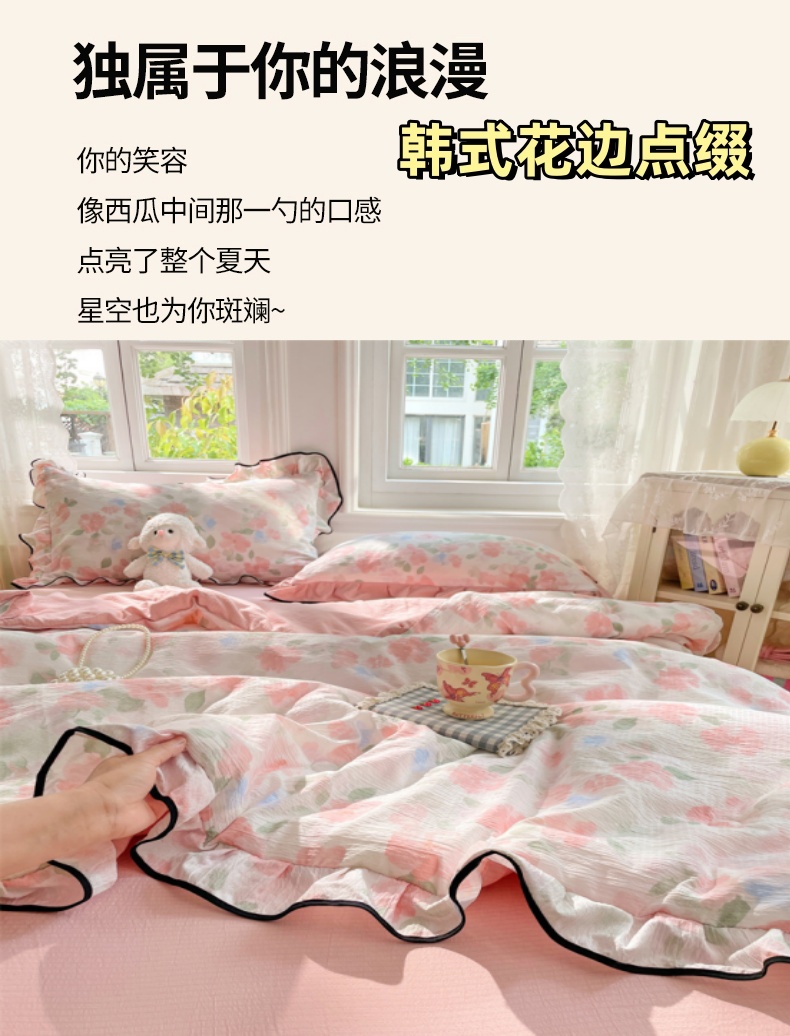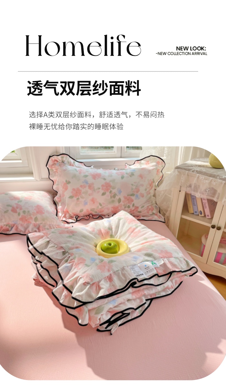 商品名称:(总)梦舒羽 2025新款皱皱双层纱花边夏被夏凉被三件套薄被芯宿舍空调被 四件套【含买家秀】