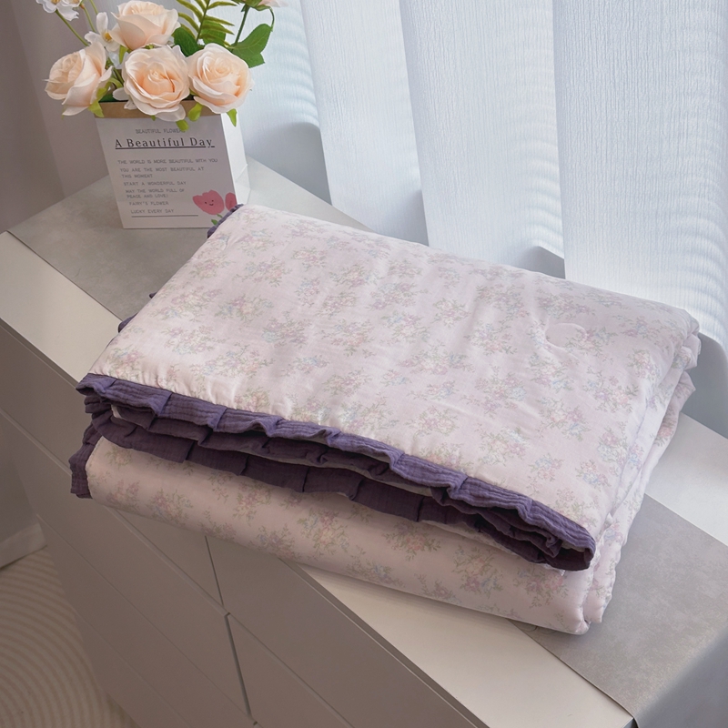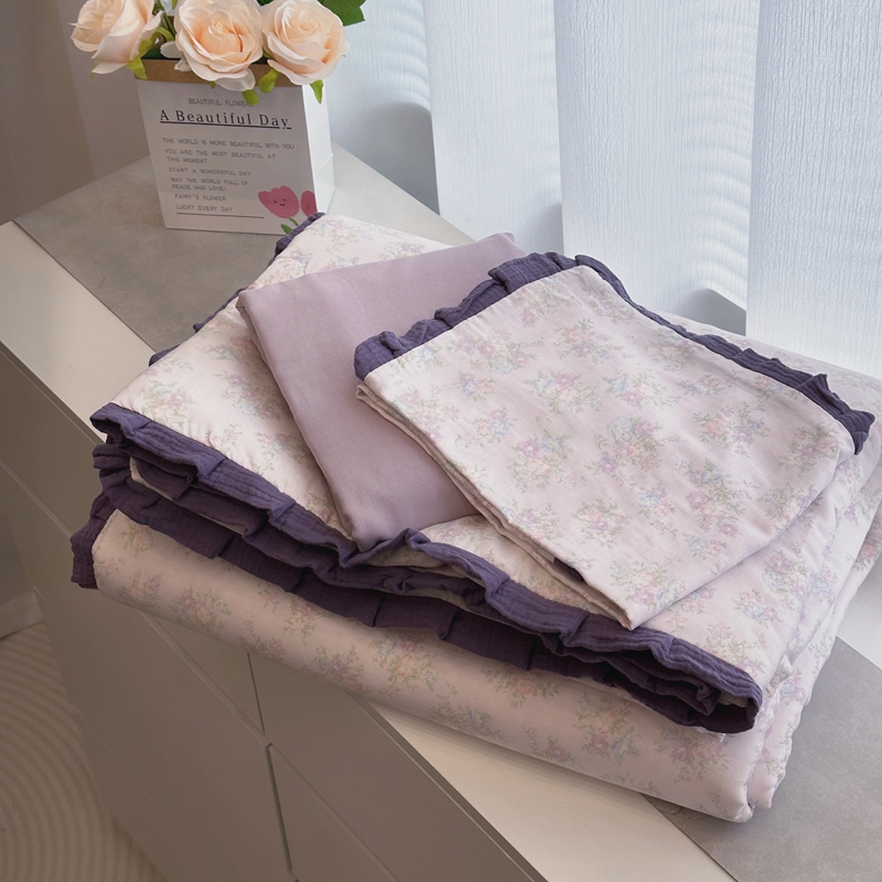当前位置: 91家纺网 > 商品网购 > 床品套件 > 四件套 > 夏被四件套 > 黛馨 2025春夏新款全棉纯棉A类双层纱工艺款夏被夏凉被空调被四件套皱皱边款 花语