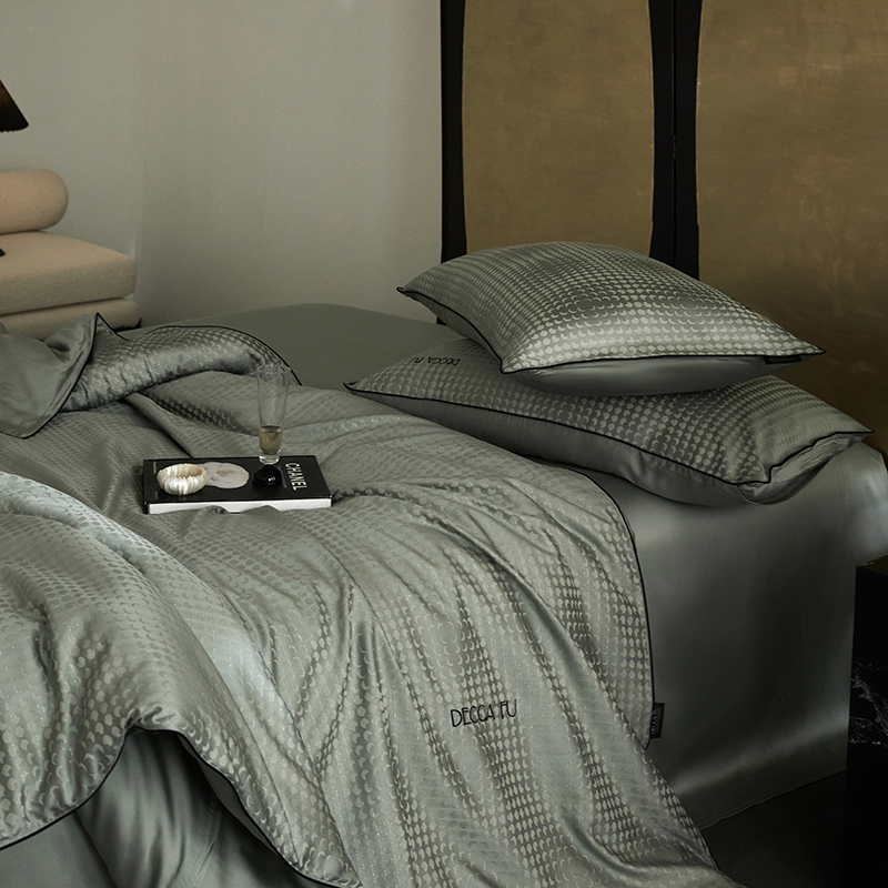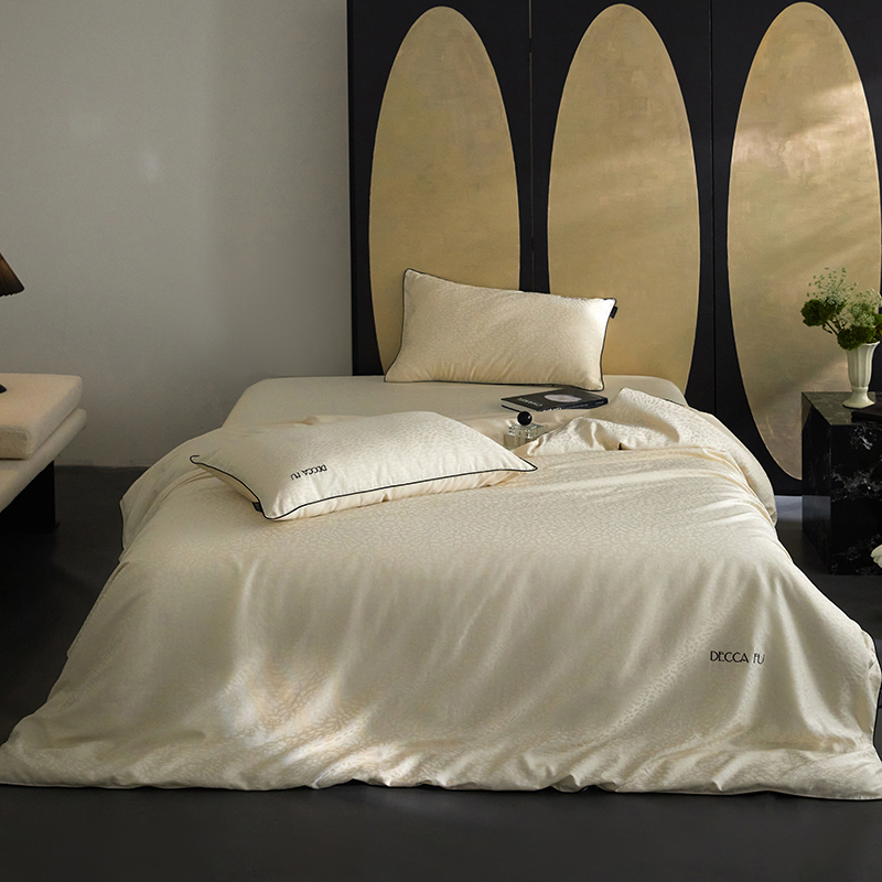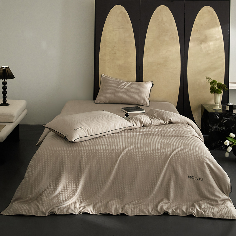 当前位置: 91家纺网 > 商品网购 > 床品套件 > 四件套 > 提花四件套 > 群鹿蚕丝羽绒馆 2025新款天丝棉提花银线刺绣嵌条麻绳工艺-铂金简奢款四件套 铂金简奢-维奥京华驼