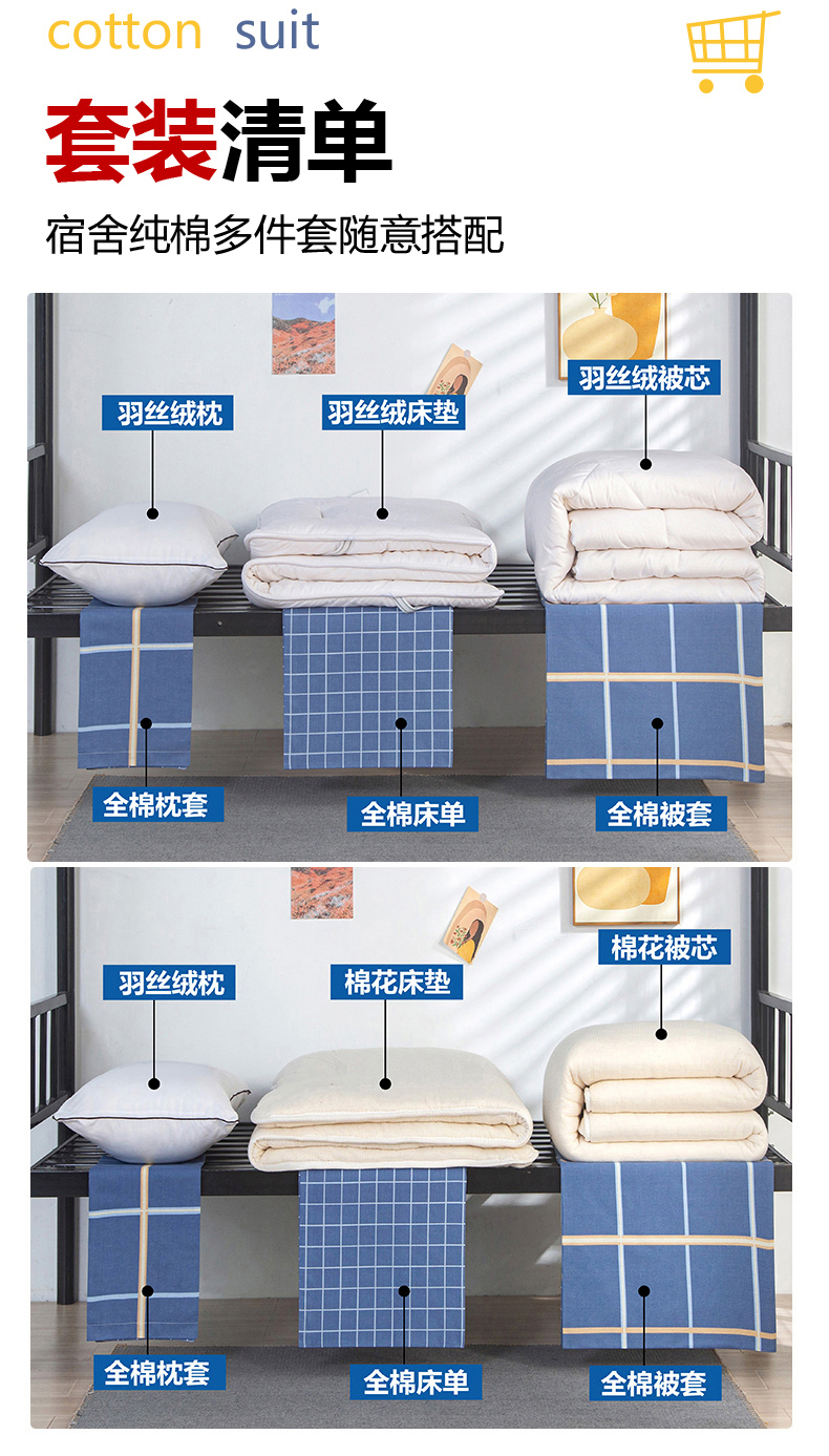 六件套:【三件套+4斤羽丝绒被子+4斤羽丝绒床垫(90*200)+枕芯】 | ¥139.00 |