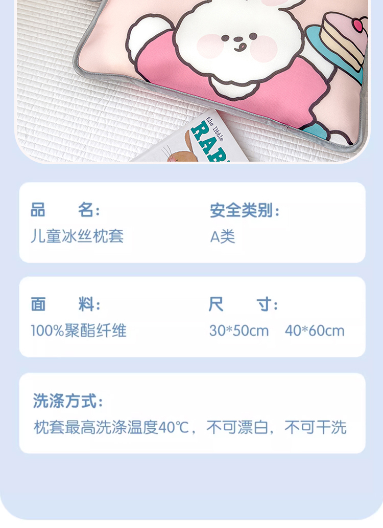 商品名称:丽美人家纺 2025新款儿童冰丝枕套 馋嘴兔