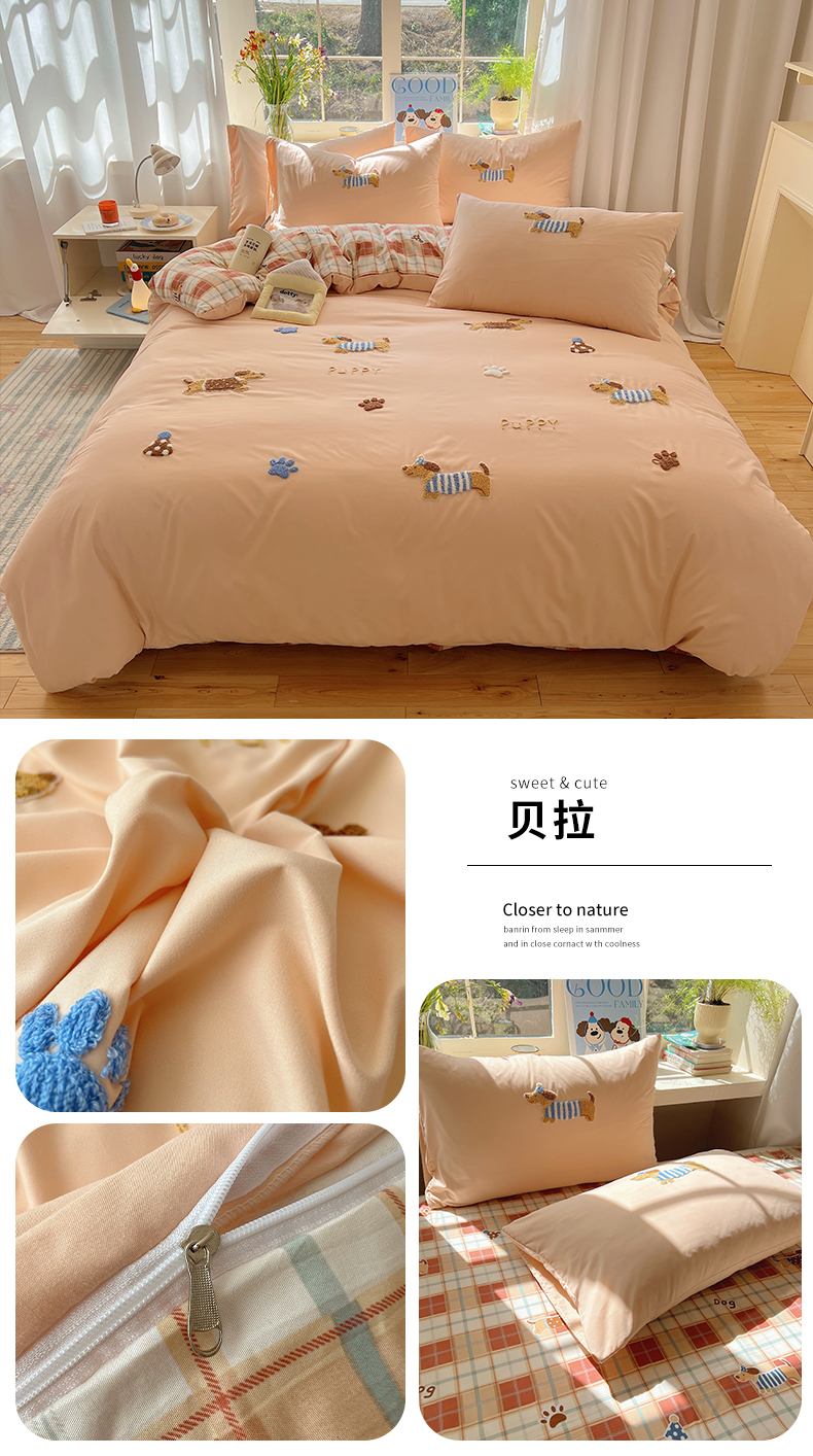 当前位置: 91家纺网 > 商品网购 > 床品套件 > 四件套 > 水洗棉四件套 > 韩都家居 2025新款卡通软萌水洗棉毛巾绣四件套 贝拉