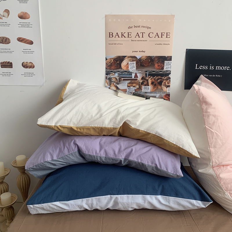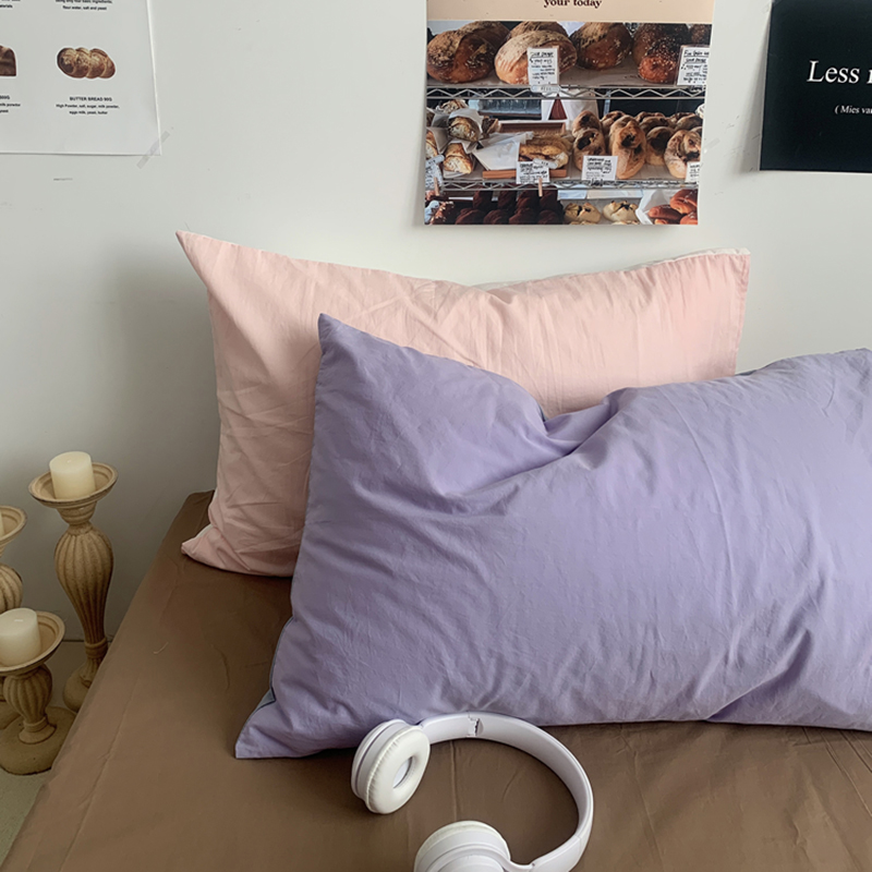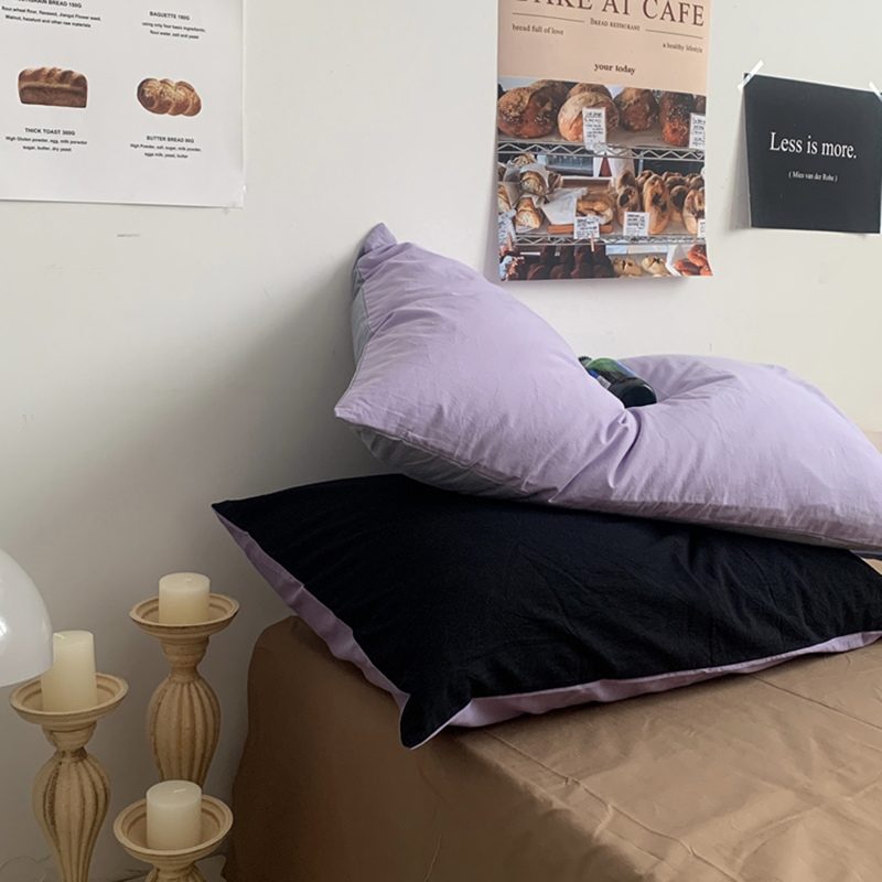 柚可家居 2024新款40支全棉色织水洗棉单品系列-单枕套 黑拼香芋紫