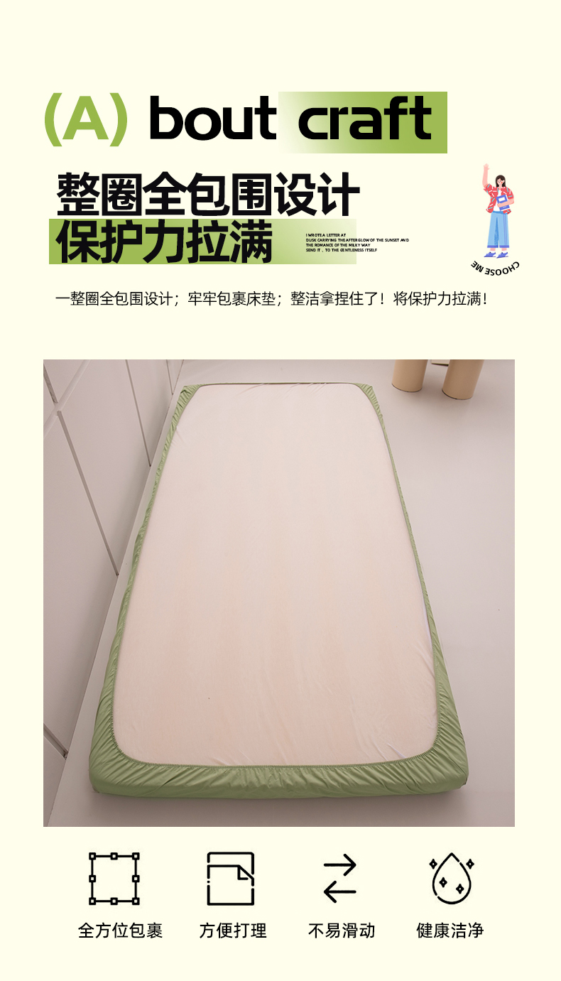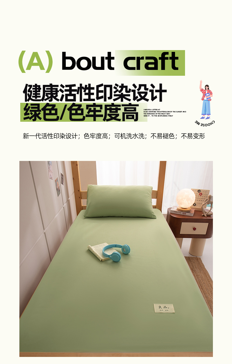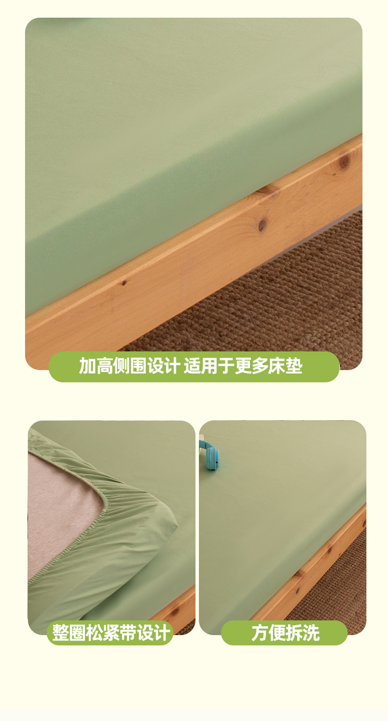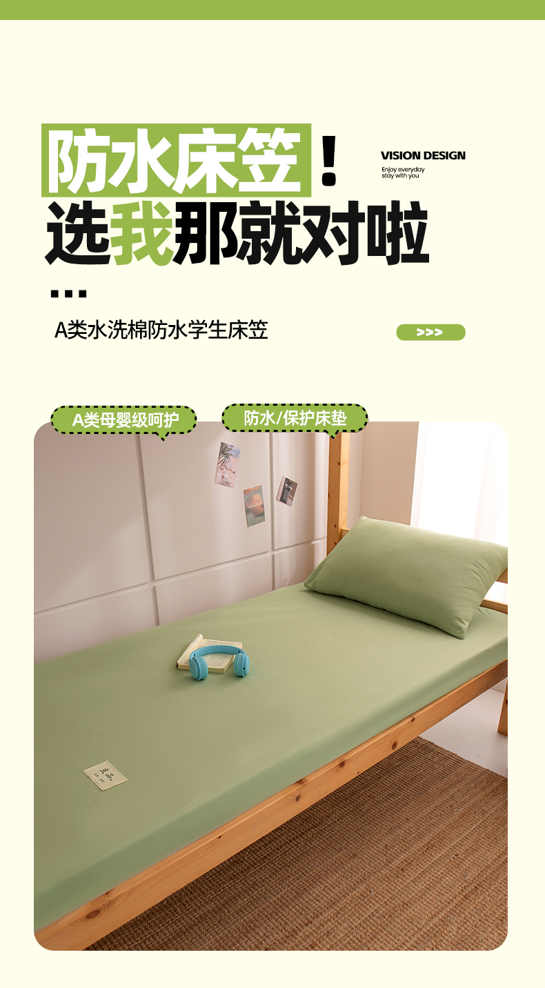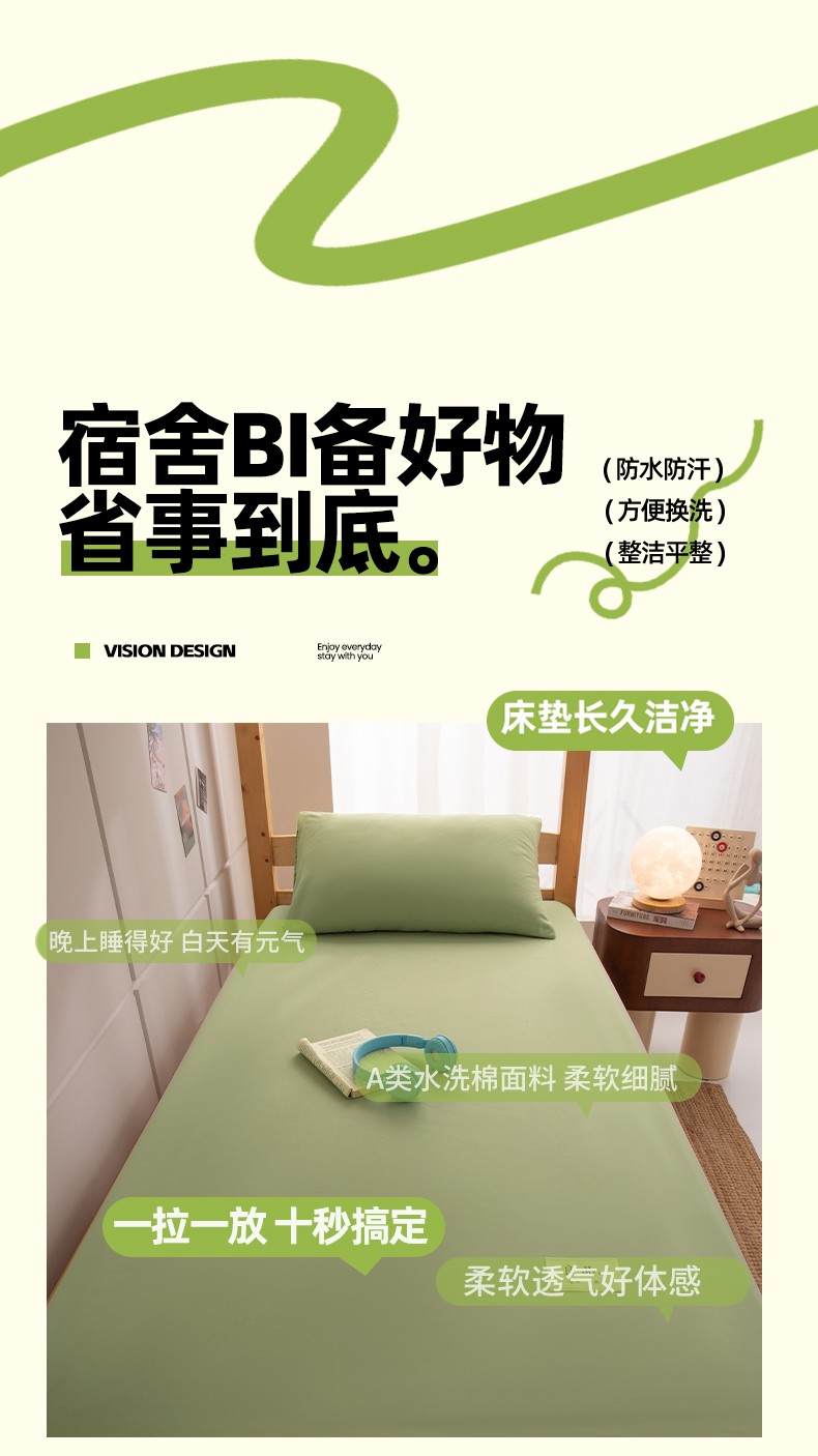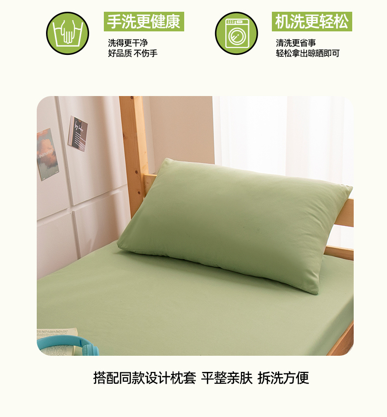商品名称:暖季家纺2025新款无印风学生防水床笠 防水-青草绿