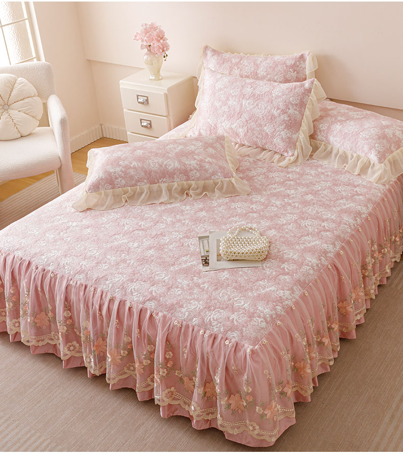 好儿喜家纺 2025新款海洋丝凉感豆豆床裙凉席-巴黎玫瑰 巴黎玫瑰粉