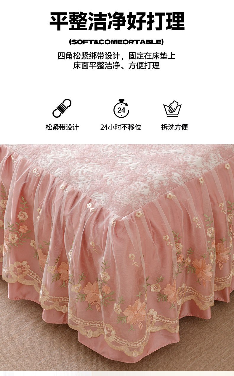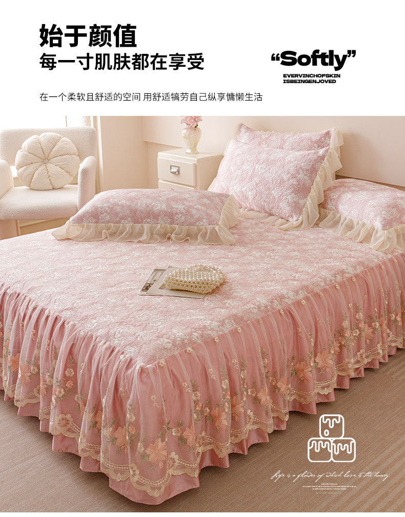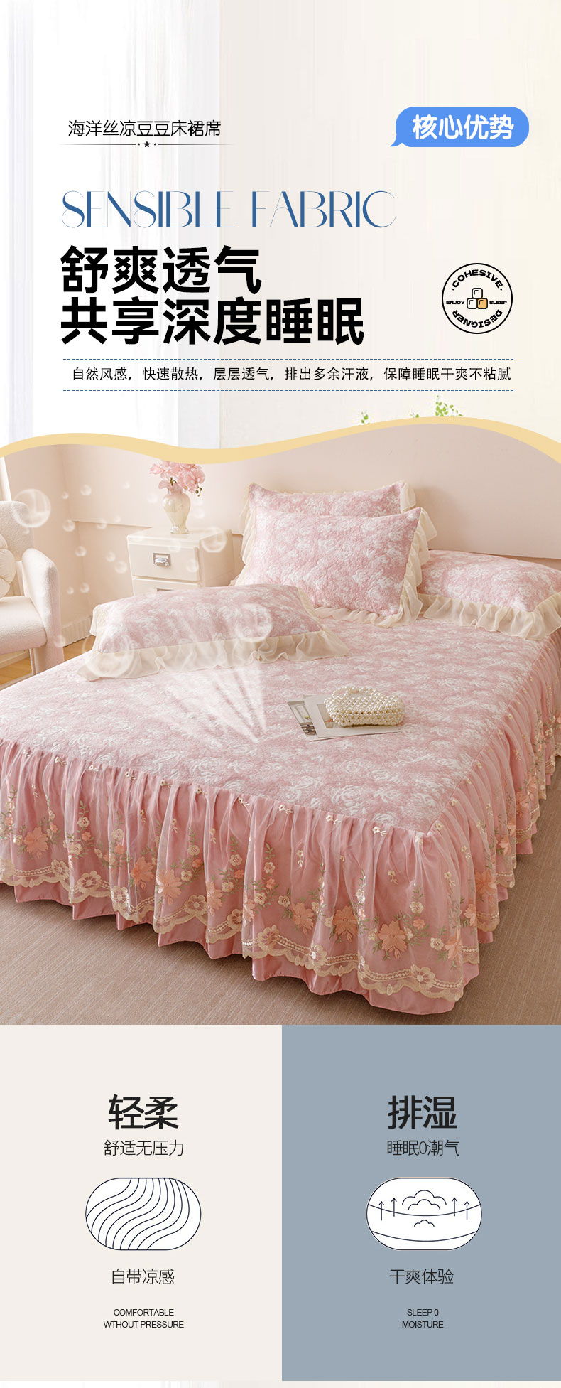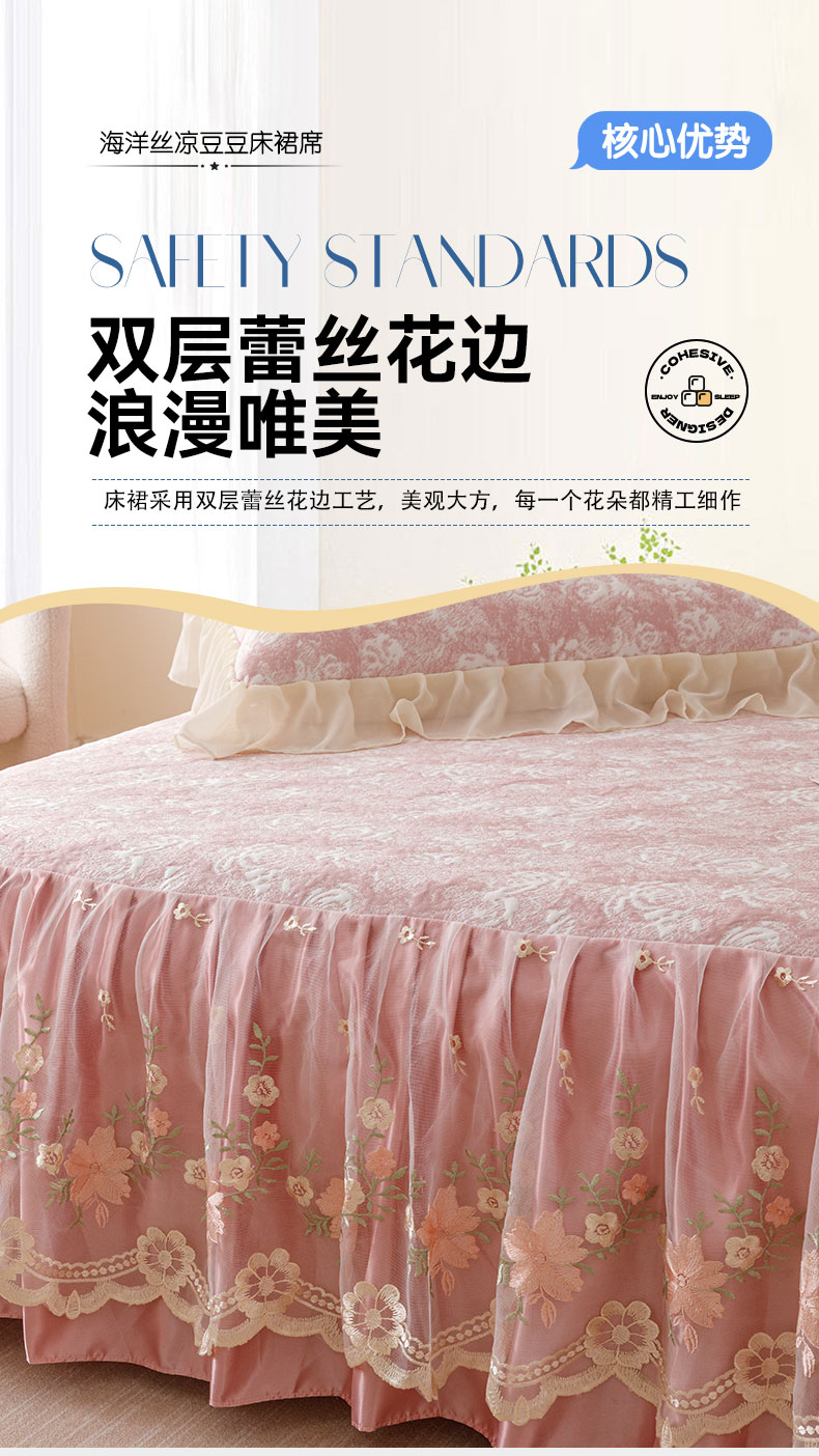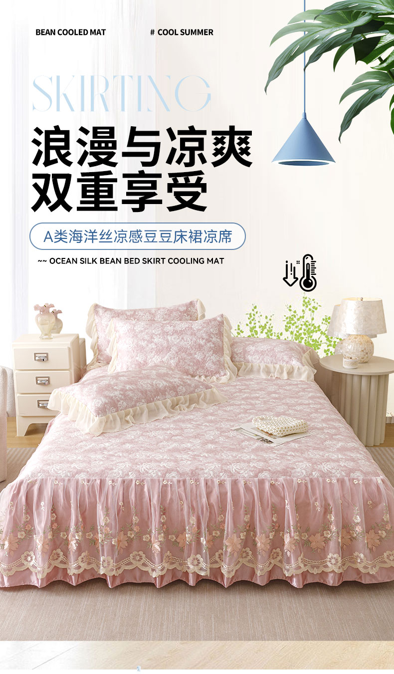 • 91家纺网 家纺一手货源 找家纺 好儿喜家纺 2025新款海洋丝凉感豆豆床裙凉席-巴黎玫瑰 巴黎玫瑰粉