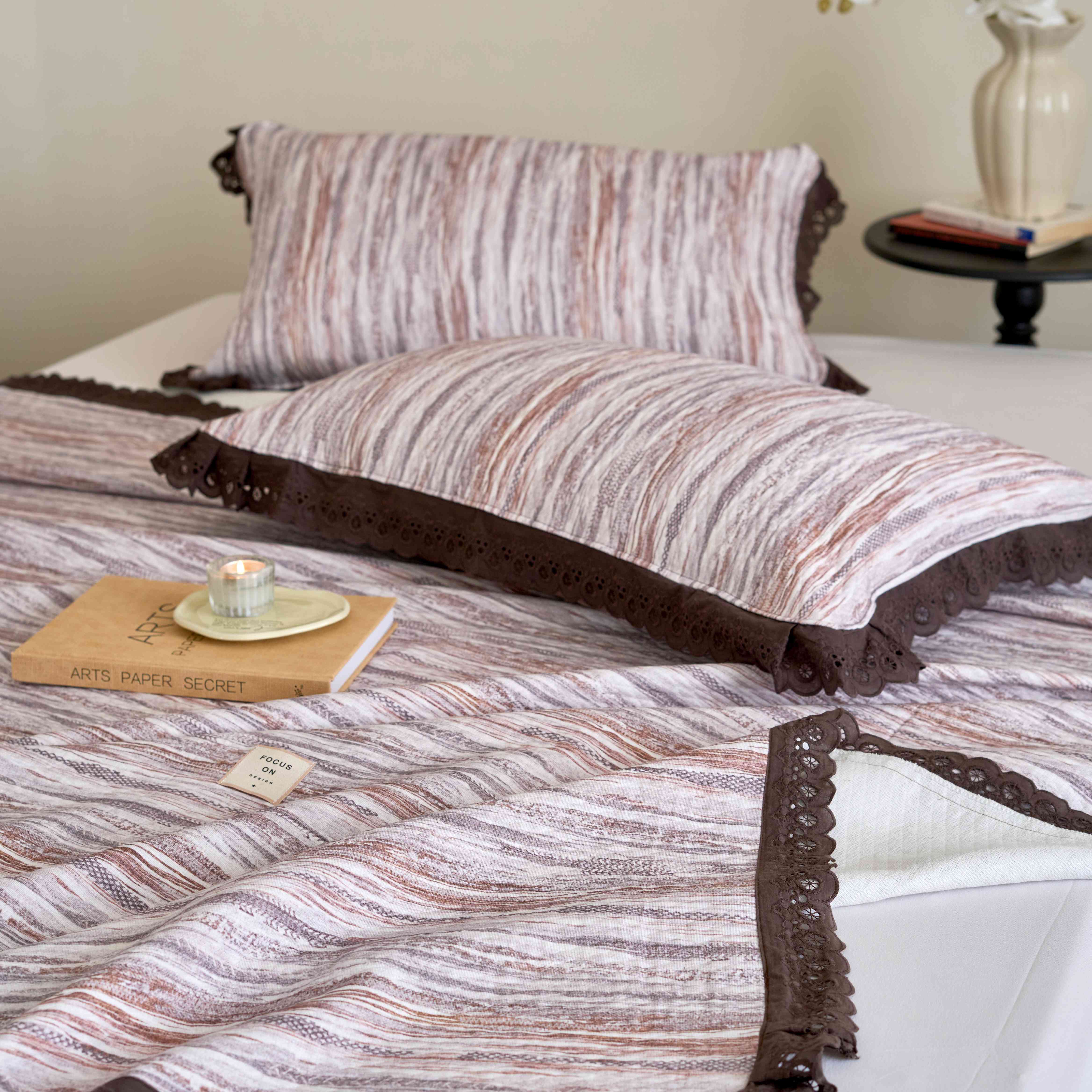 月夏 2025新款春夏全棉纯棉提花床盖三件套 半岛-咖