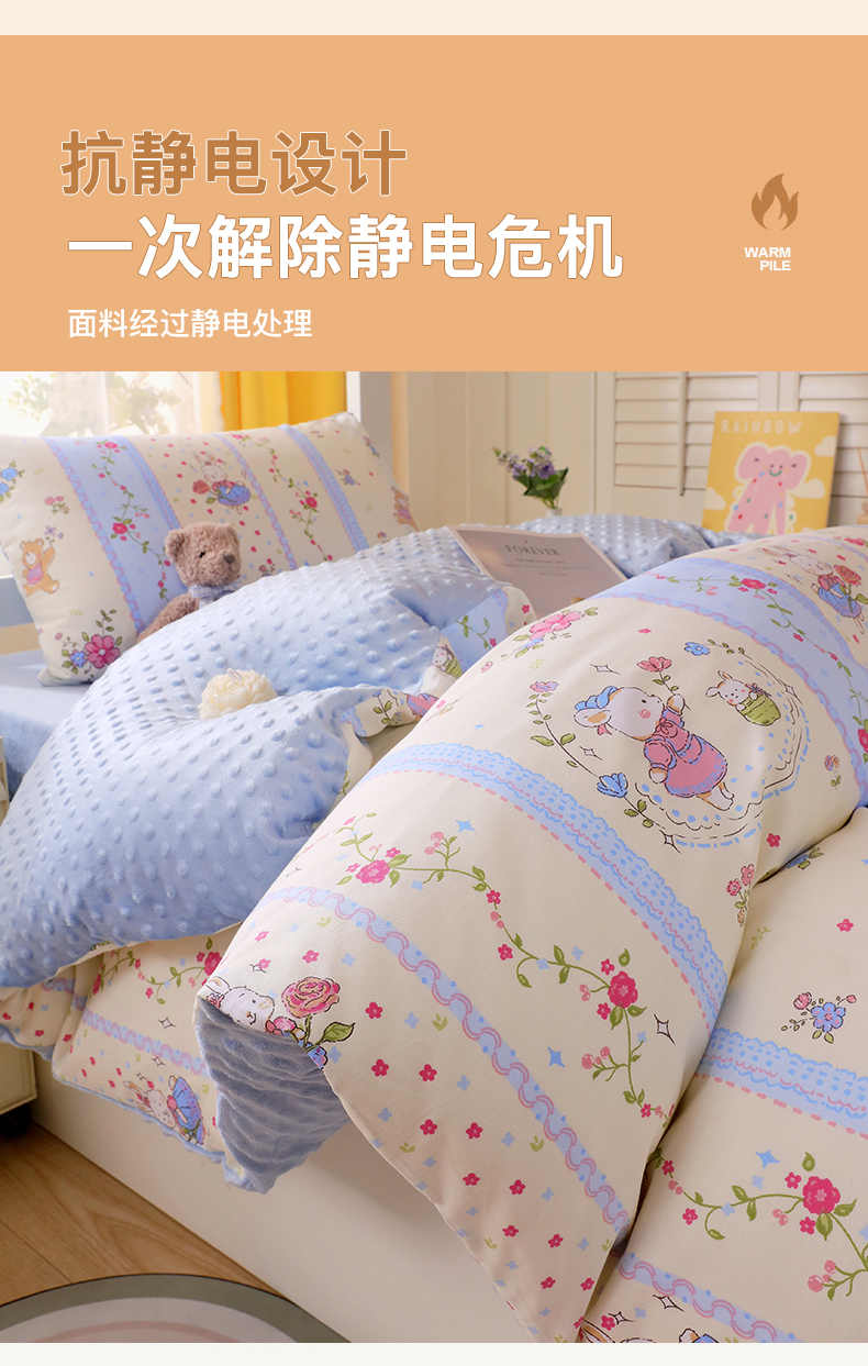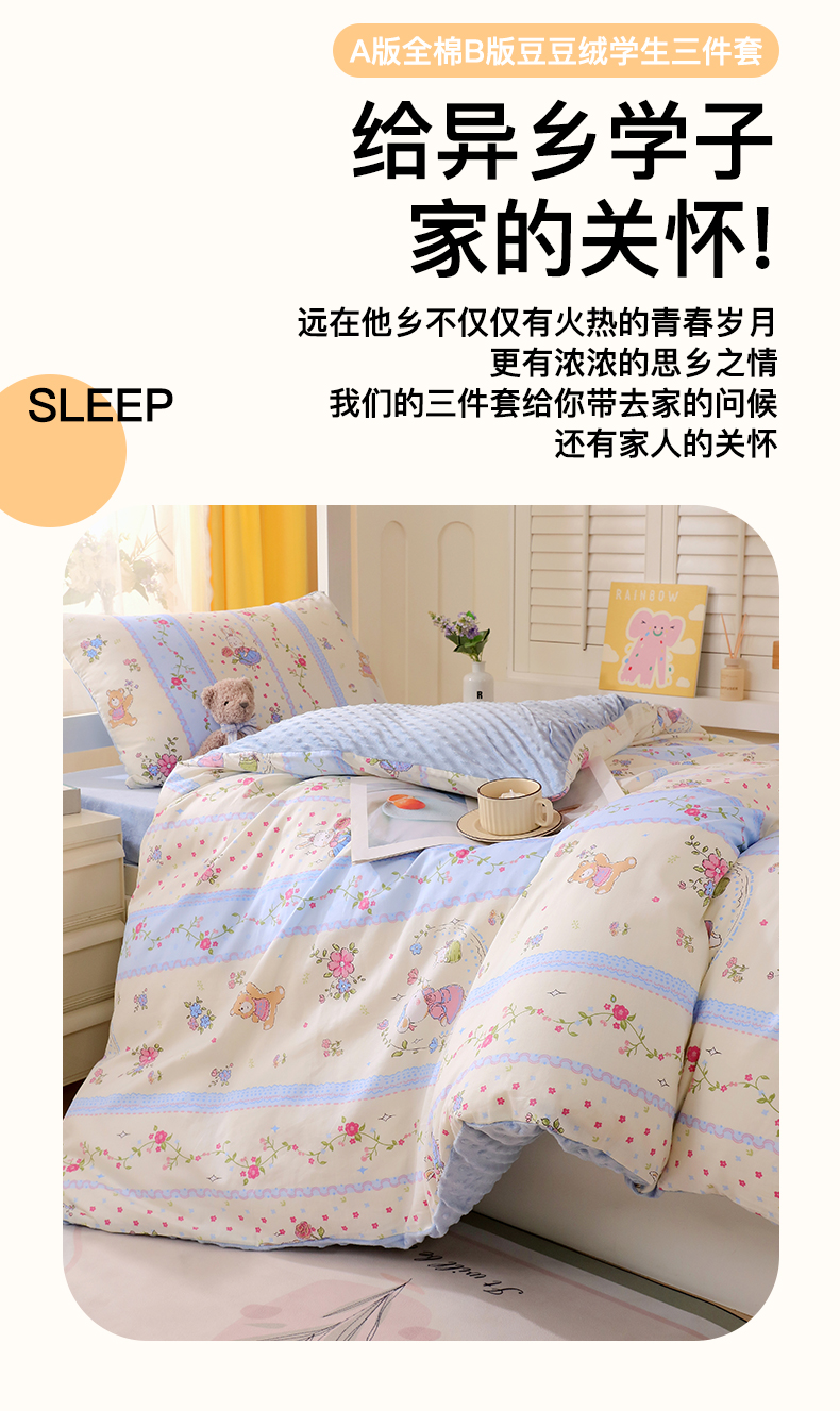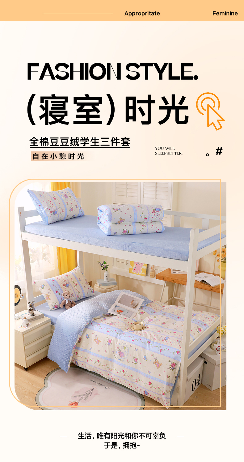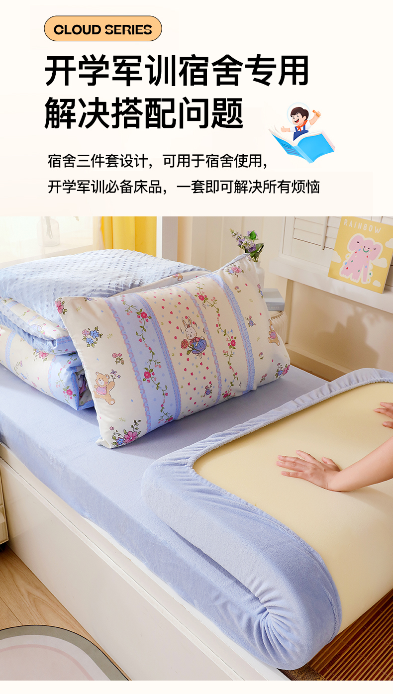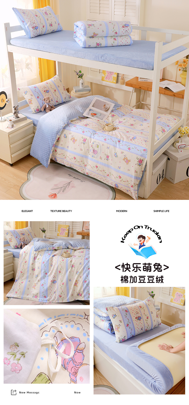 当前位置: 91家纺网 > 商品网购 > 床品套件 > 四件套 > 全棉普通四件套 > 金鑫汇2025新款学生上下铺棉加豆豆绒三件套 快乐萌兔