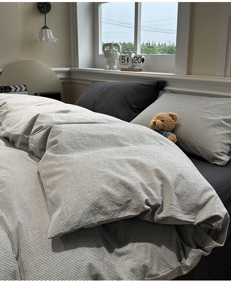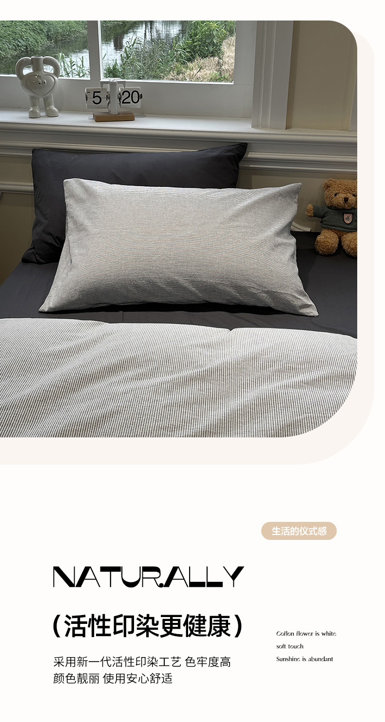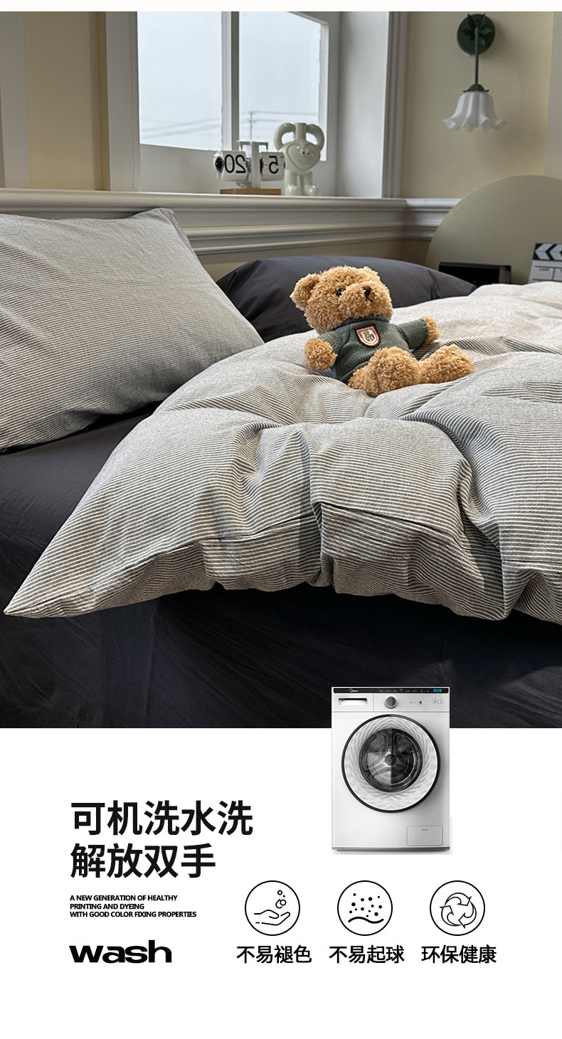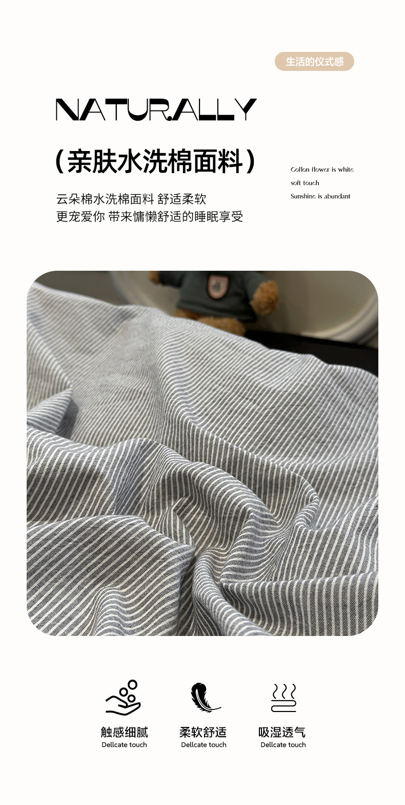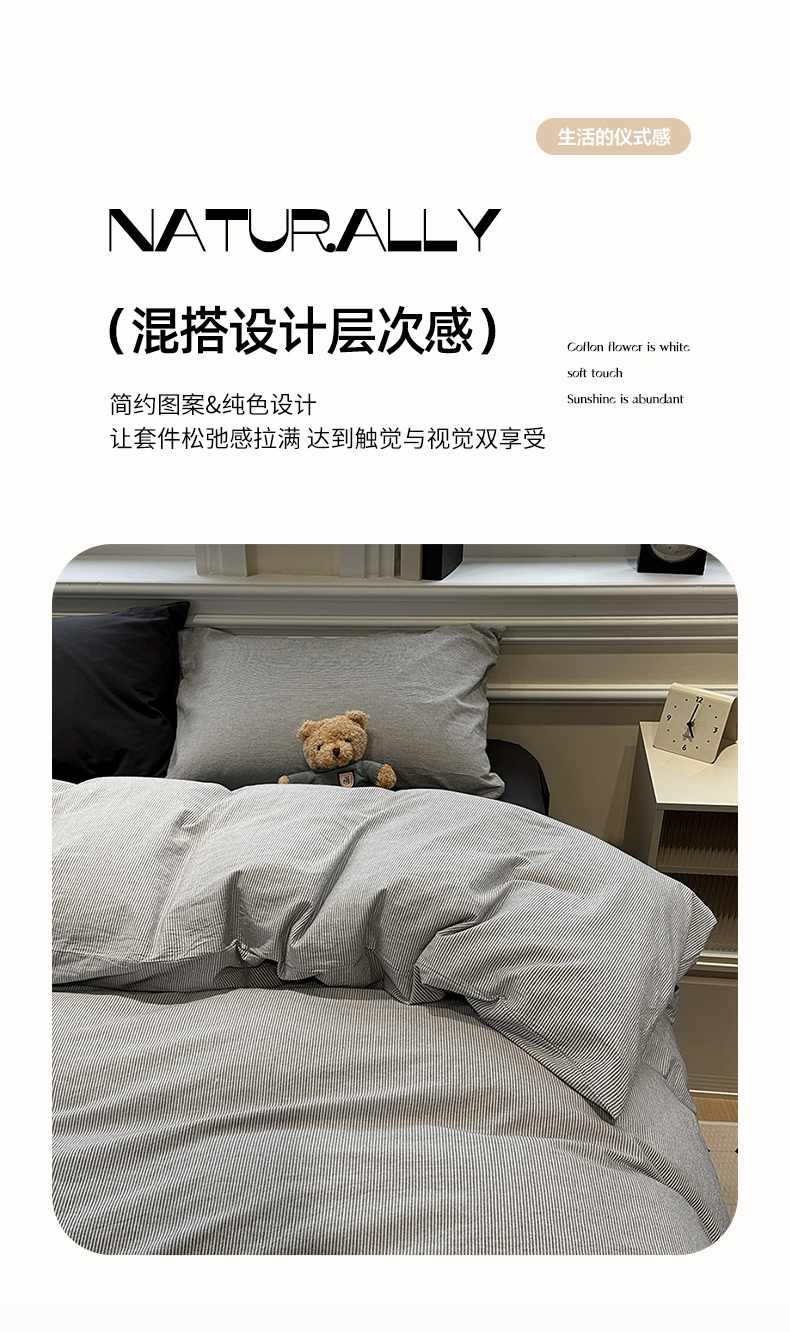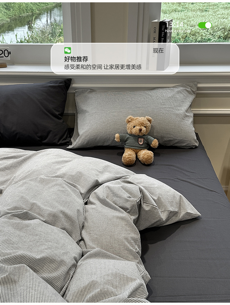 当前位置: 91家纺网 > 商品网购 > 床品套件 > 四件套 > 水洗棉四件套 > 欣晴家纺 2025新款软糯水洗棉条格无印宜家风混搭三件套四件套(风格2) 混搭灰条