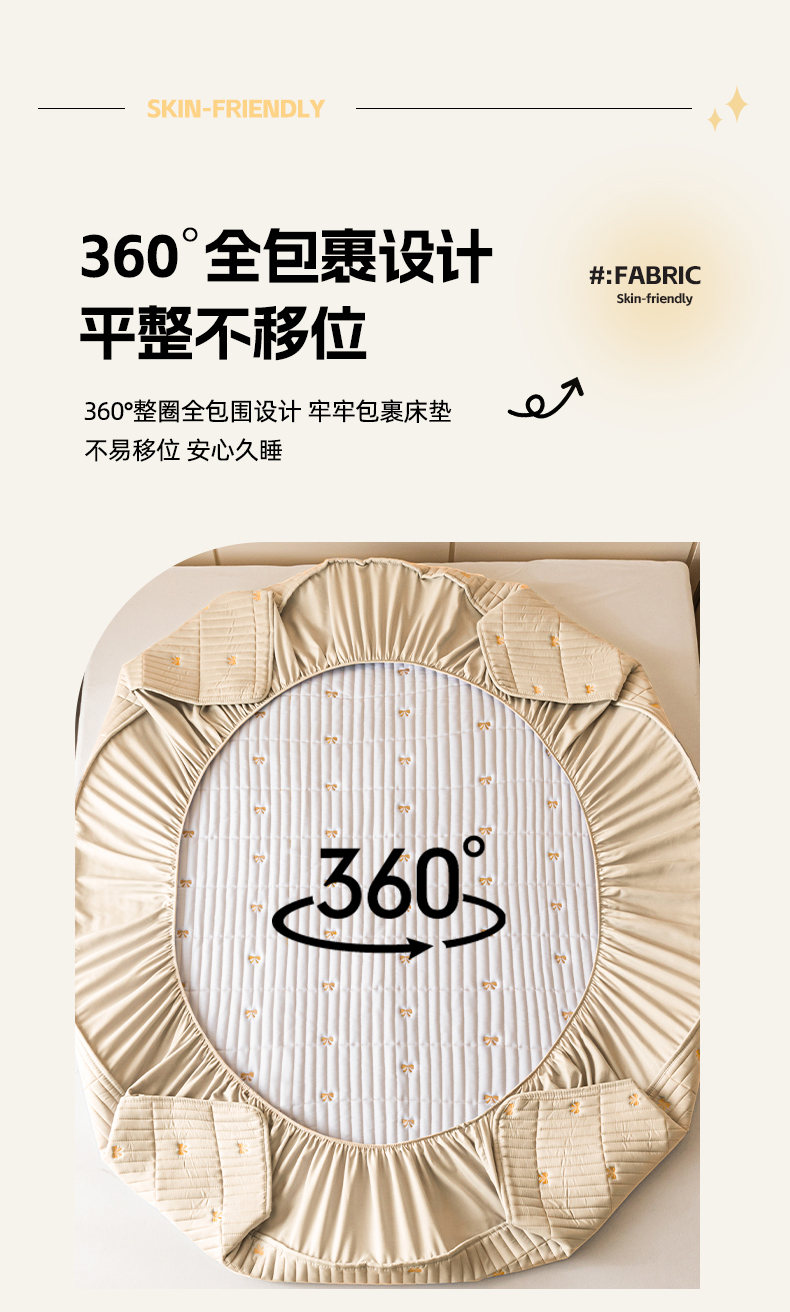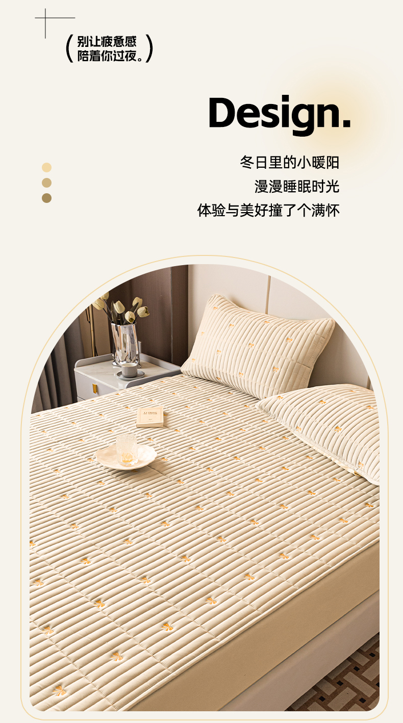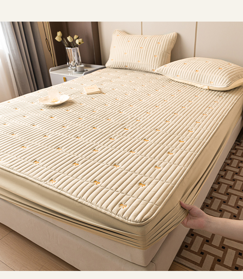 当前位置: 91家纺网 > 商品网购 > 床上用品 > 床笠 > 暖季家纺 2025新款A类亲肤面料夹棉绣花床笠-防水款 小蝴蝶结-卡其-防水款