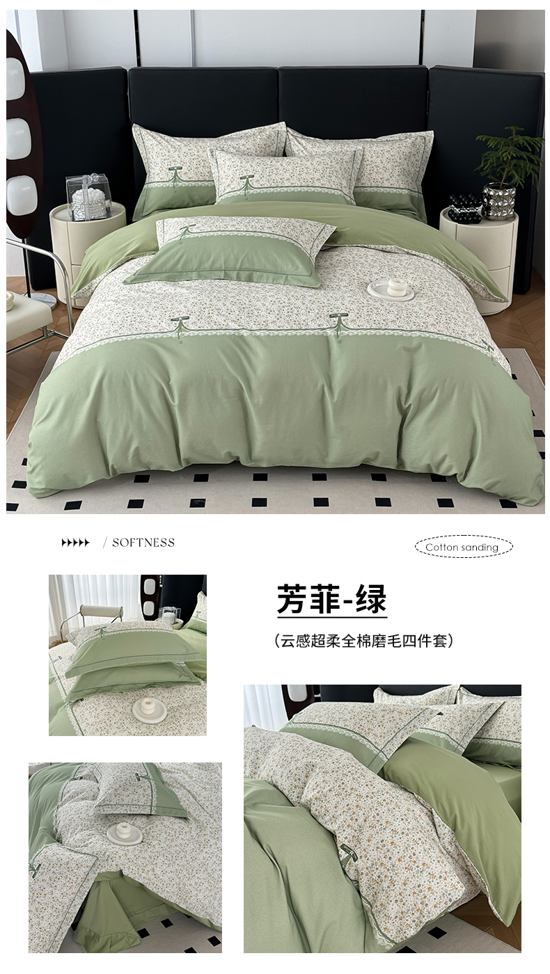 当前位置: 91家纺网 > 商品网购 > 床品套件 > 四件套 > 全棉普通四件套 > 艾迪尚家纺 2025新款云感超柔全棉磨毛印花四件套系列 碧瑶-绿