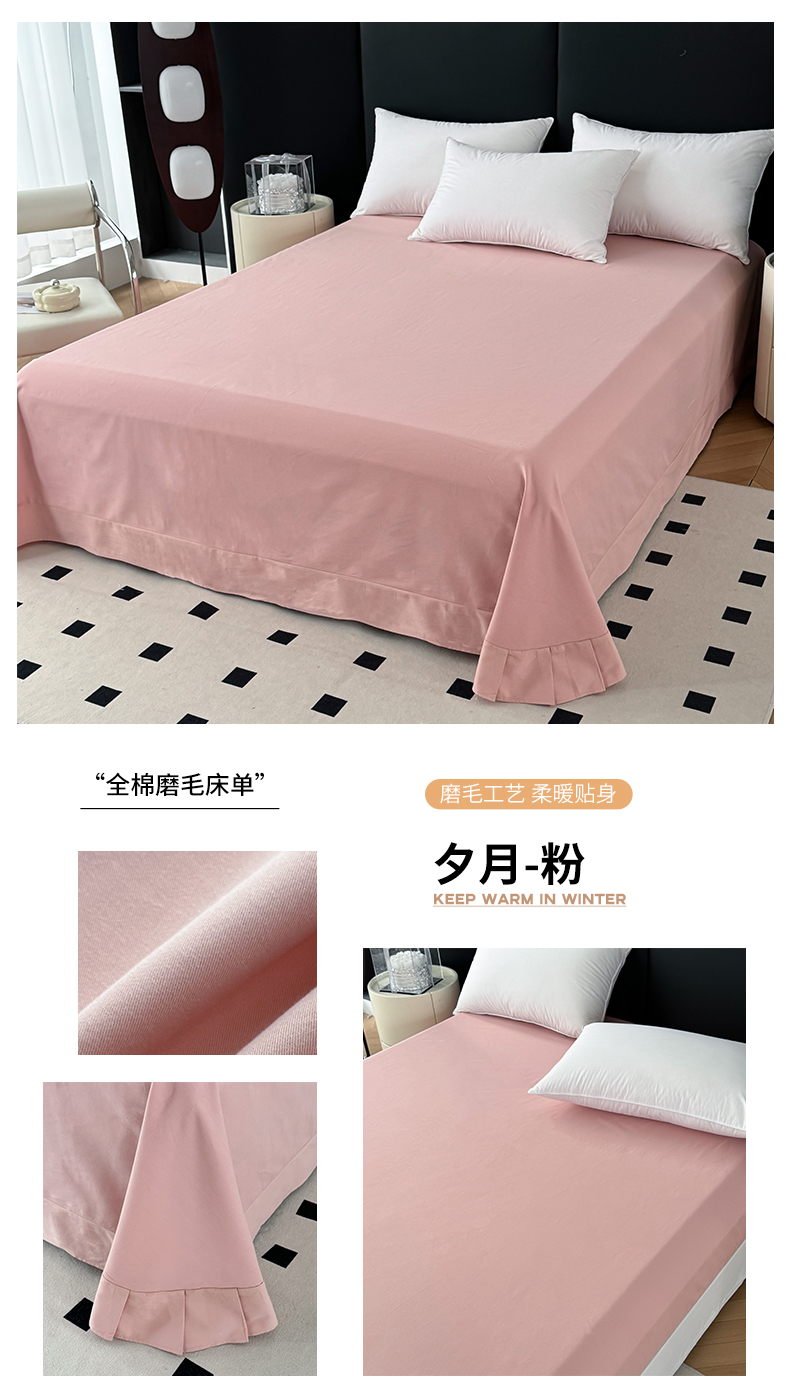 (总)艾迪尚家纺 2026法式韩版荷叶边纯色长绒棉纯棉单床单单品床单床单单件,薄荷青灰,冰川蓝香草白,茉绿奶芙,奶芙慕粉,青提絮语,柔杏浅绿,瑞绿慕斯粉,雾蓝杏语,云白芽绿,云灰仙女粉