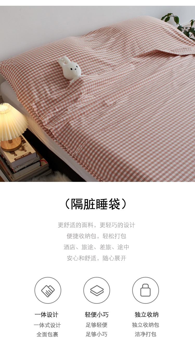 商品名称:猪先生2025新款全棉水洗棉旅行隔脏睡袋 蜜粉小格