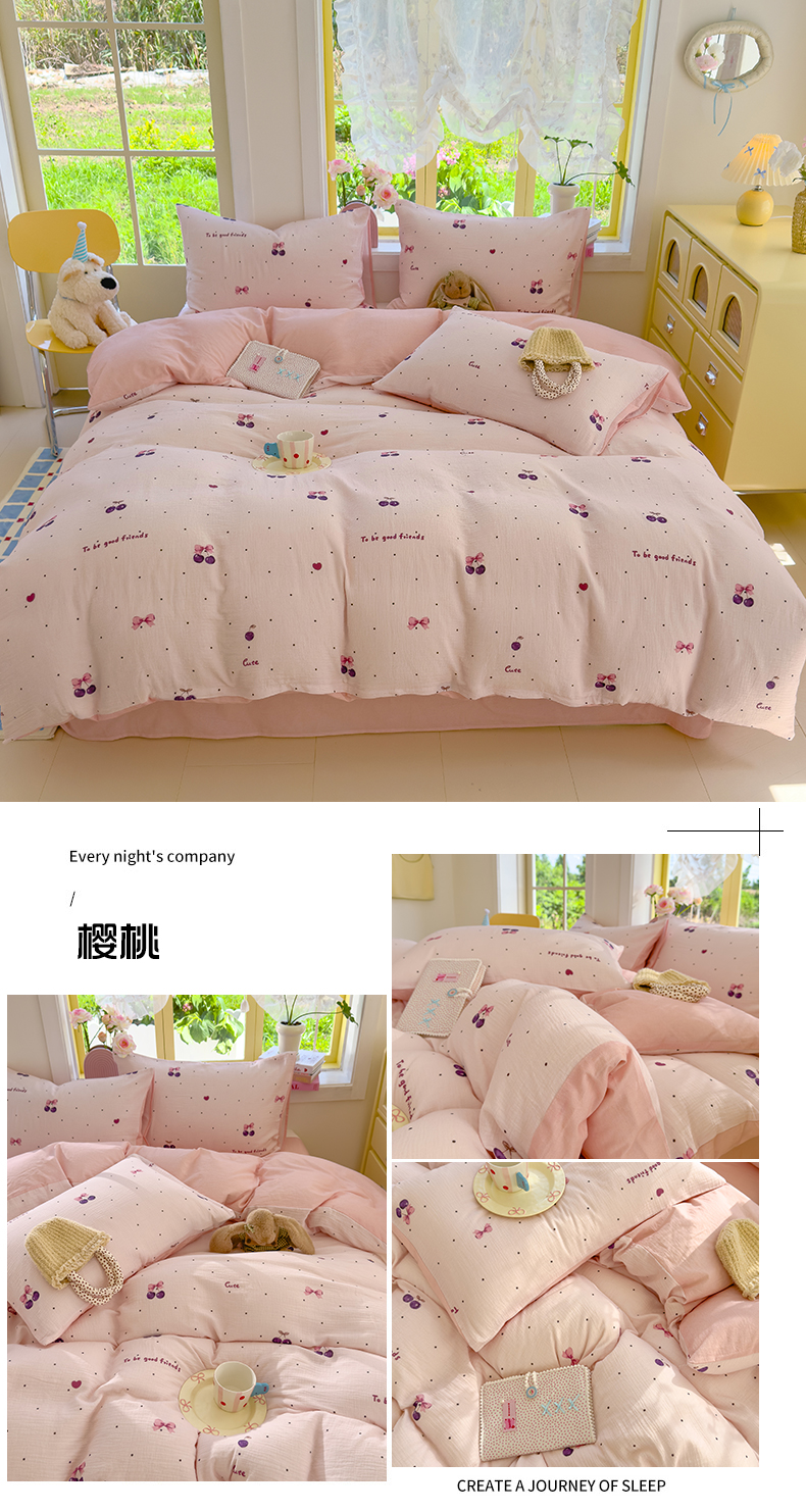 当前位置: 91家纺网 > 商品网购 > 床品套件 > 四件套 > 双层纱四件套 > 颜选2025新款105克加厚双层纱木棉四件套(含买家秀) 樱桃