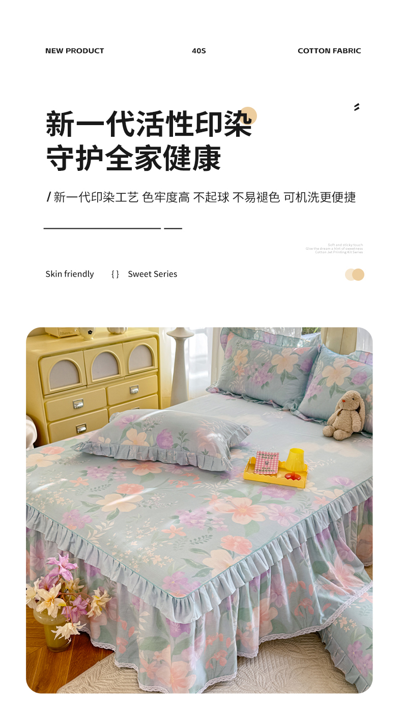 (总)美达家纺 2025新款全棉纯棉AB版蕾丝小花边单层床裙四件套,解语花,南湘,沁雨花叶,悦棠