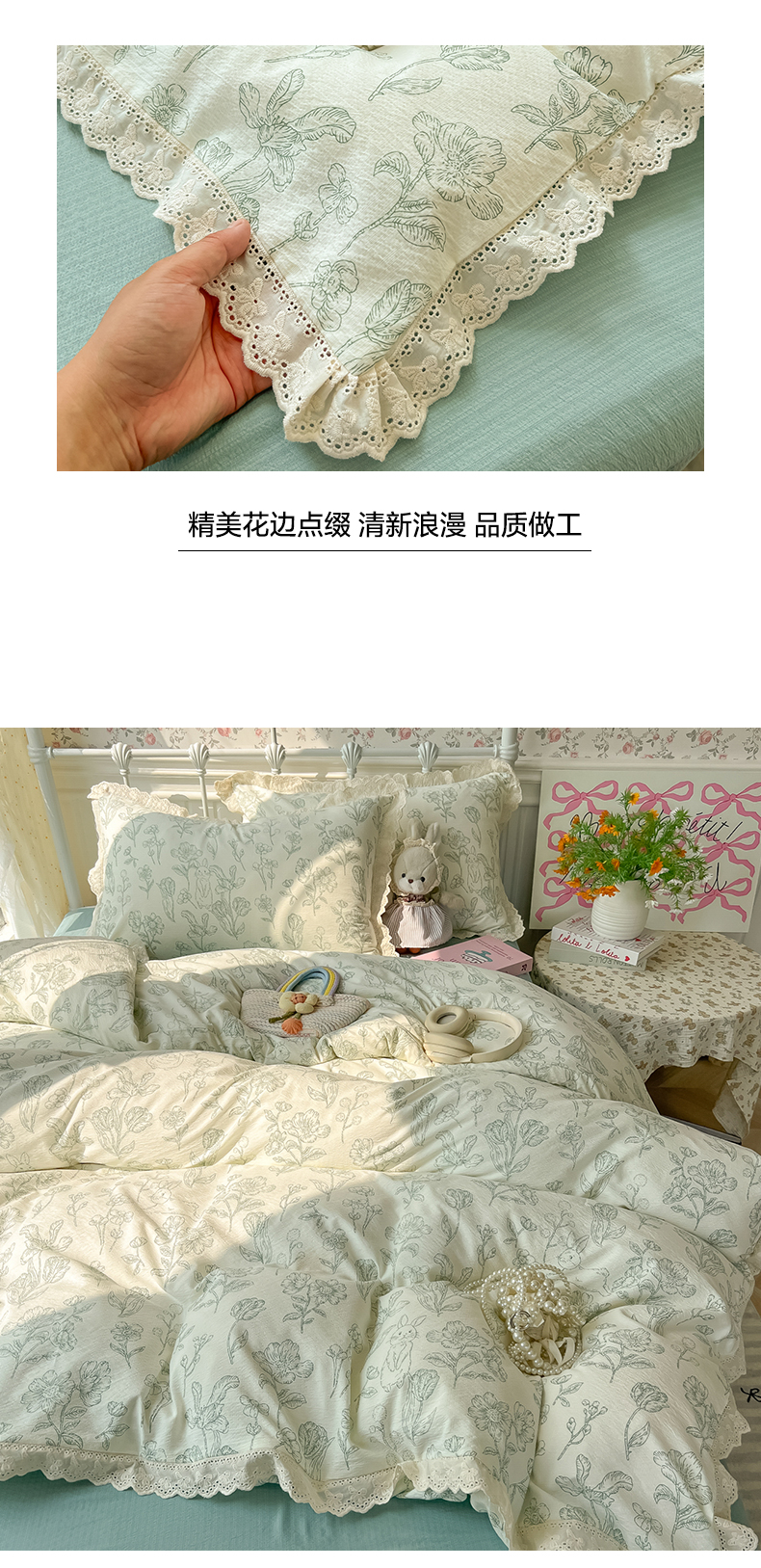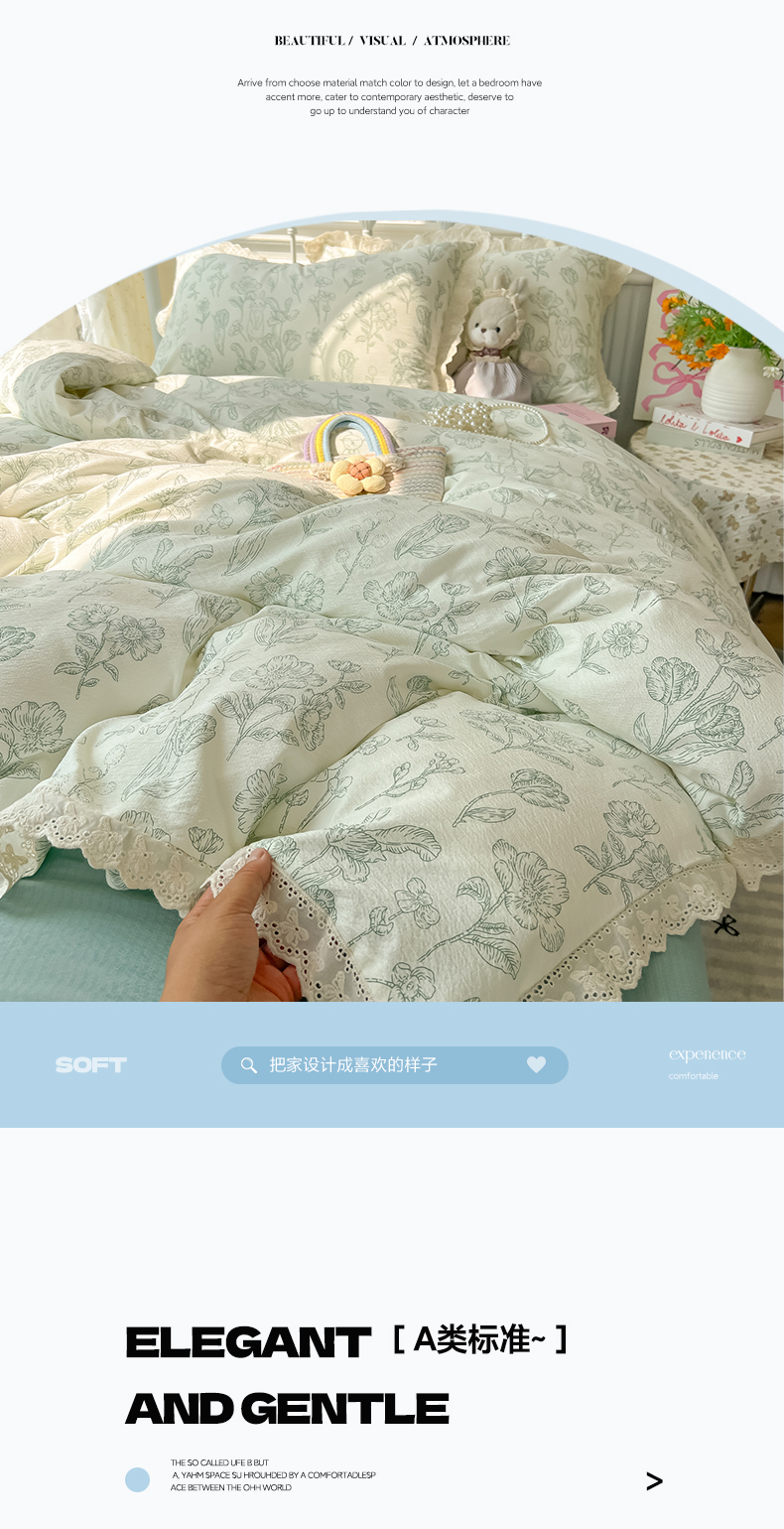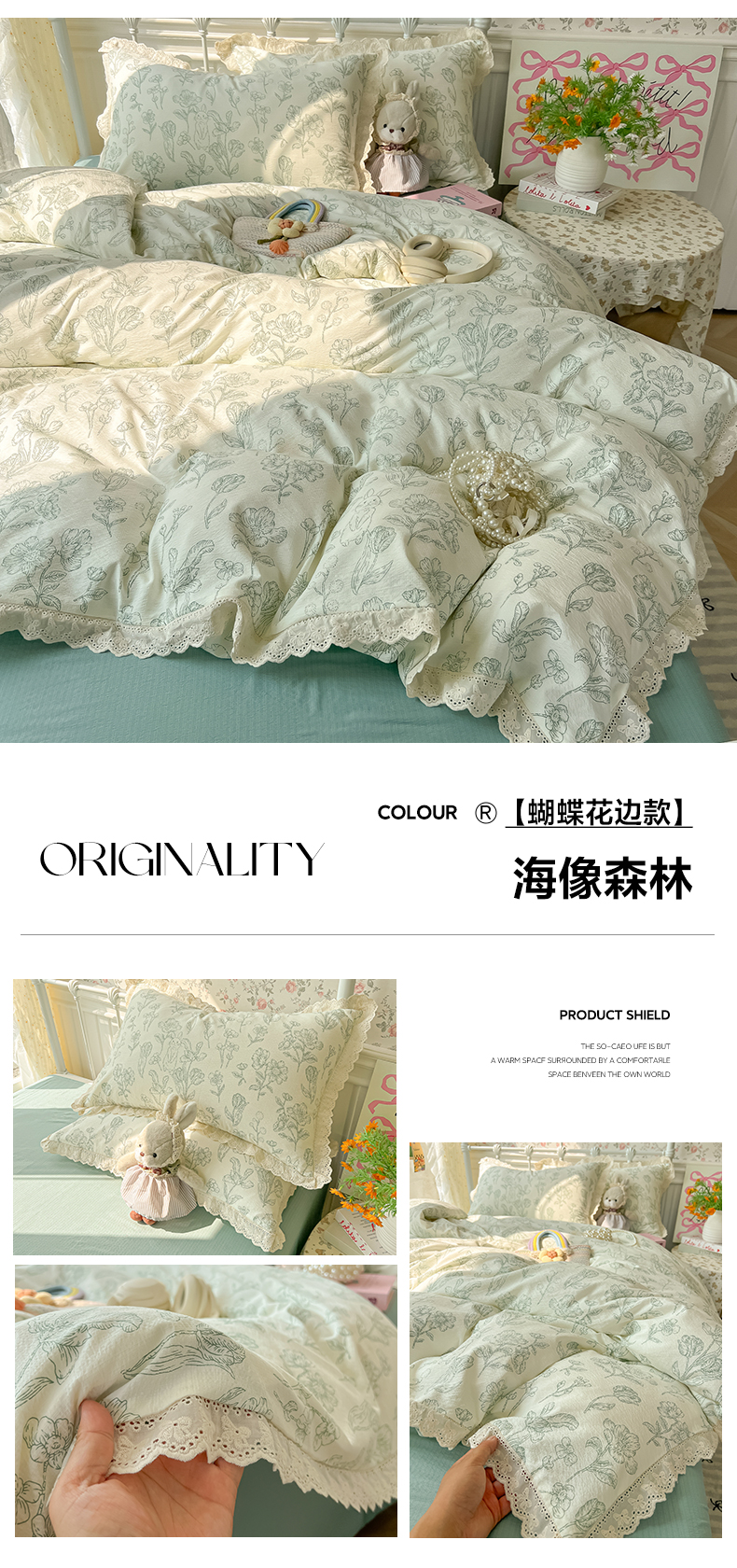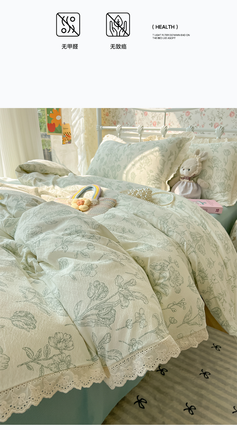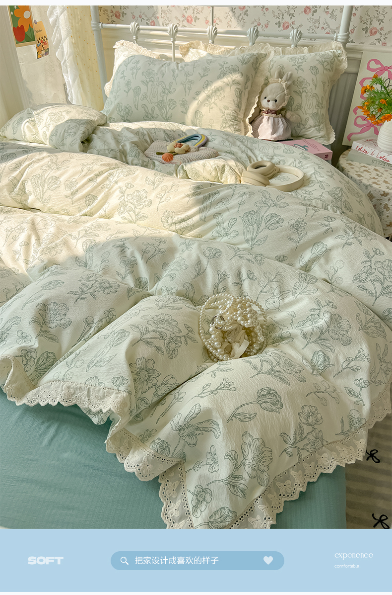 当前位置: 91家纺网 > 商品网购 > 床品套件 > 四件套 > 其它四件套 > 韩巢家纺 2025新款蝴蝶花边直播热销款四件套开学季韩系学生宿舍床上三件套-(提供卖家秀) 海像森林【蝴蝶花边款】