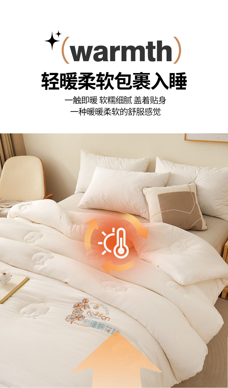• 91家纺网 家纺一手货源 找家纺 (总)西域种棉人·千百笠 2025新款A类填充100%棉新疆棉花被子毛巾绣贴布绣冬被棉被全棉冬季加厚保暖纯棉花被芯 ,梦屿白,梦屿灰