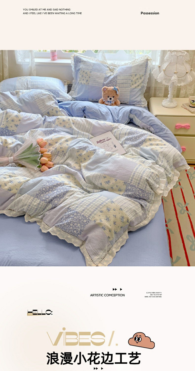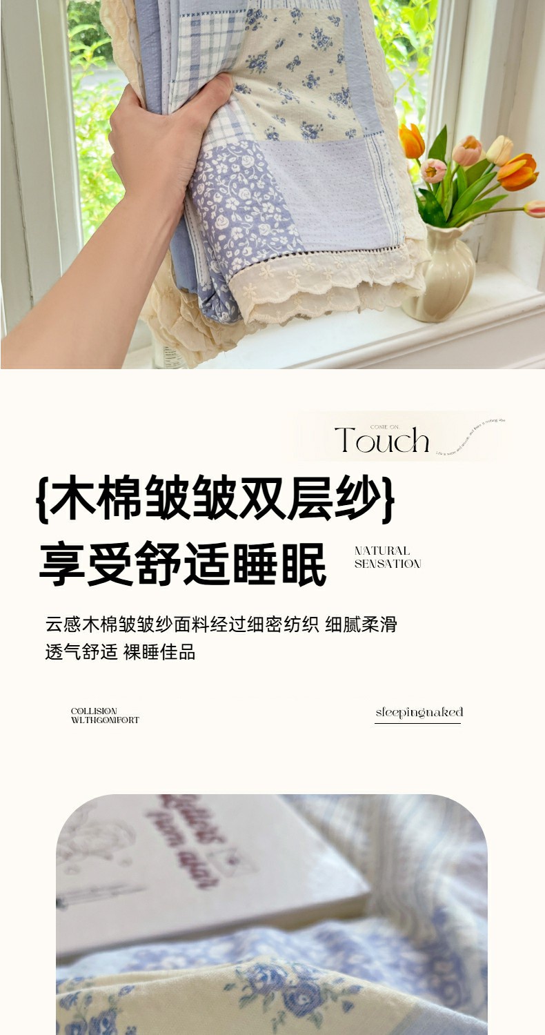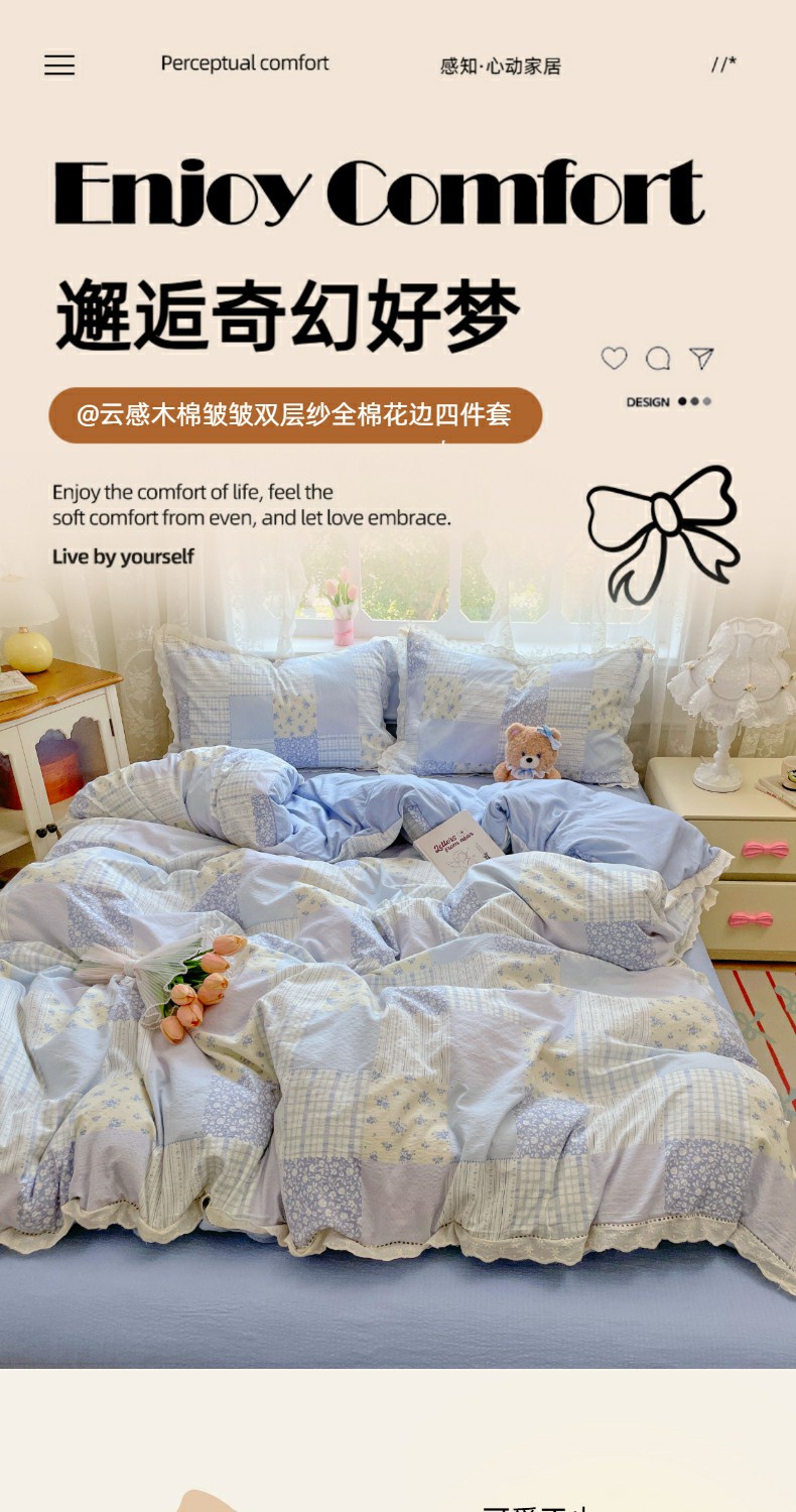 当前位置: 91家纺网 > 商品网购 > 床品套件 > 四件套 > 其它四件套 > 优尚佳生活馆 2025新款云感木棉皱皱双层纱全棉镂空花边四件套(提供买家秀) 百福之梦