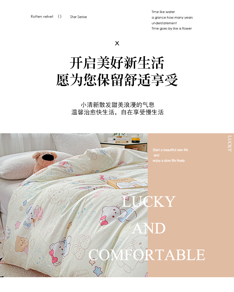 商品名称:恩泽家纺 2025新款全棉纯棉12868喷气印花系列被套单品被套单件单被套-第二批 凯蒂宝贝