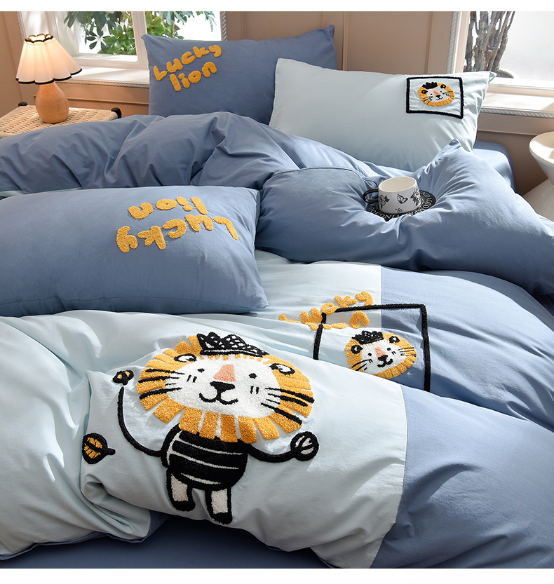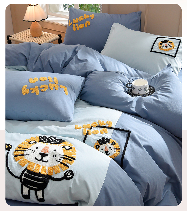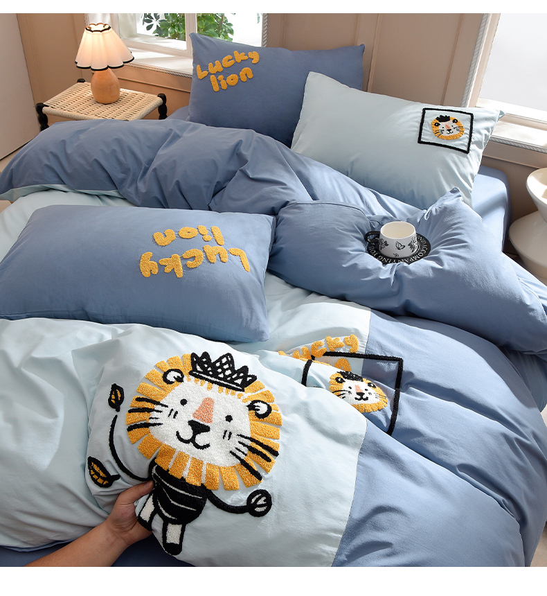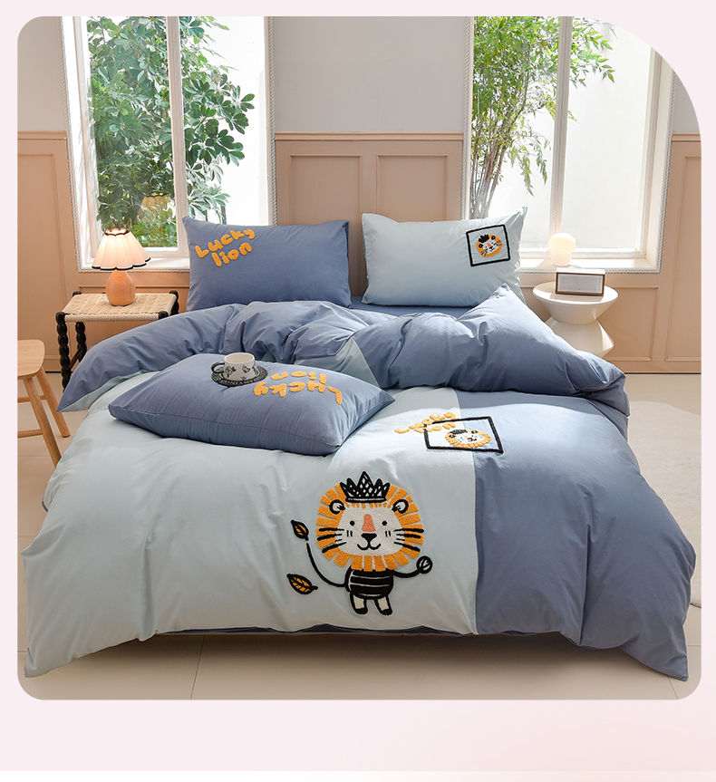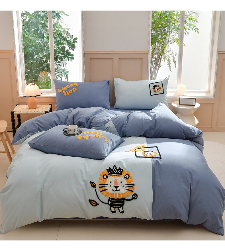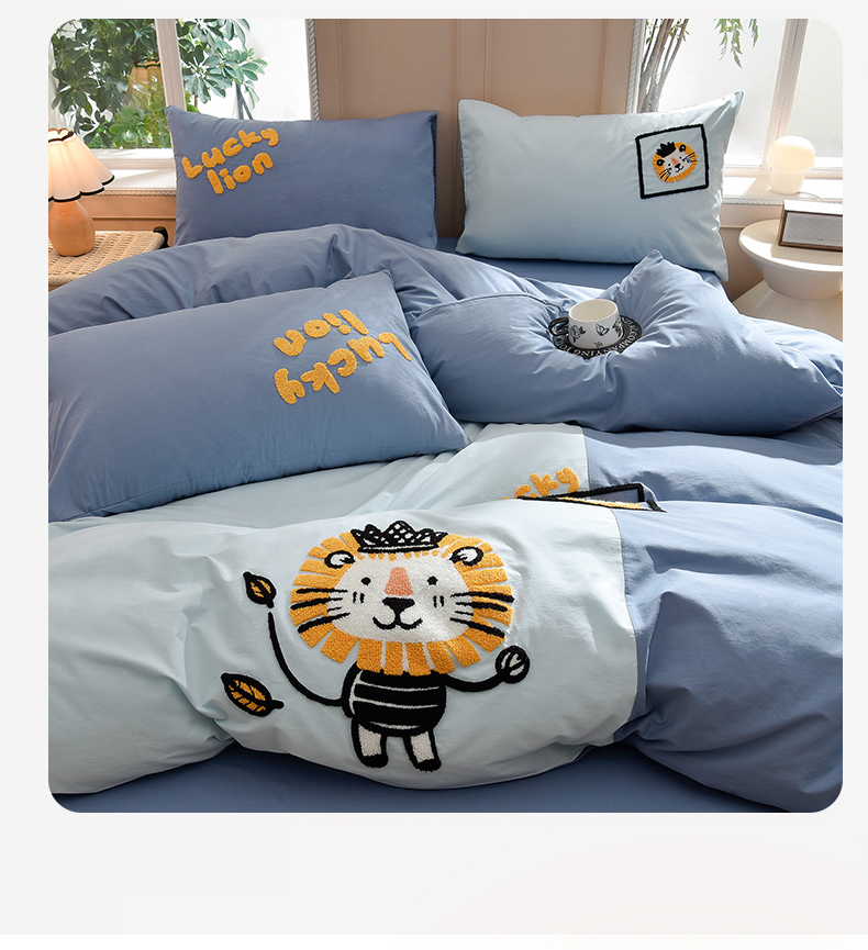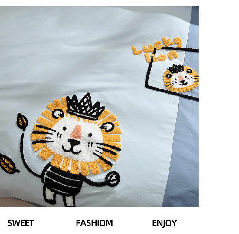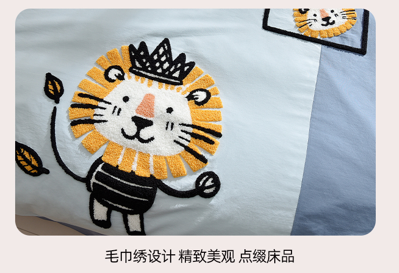 当前位置: 91家纺网 > 商品网购 > 床品套件 > 四件套 > 水洗棉四件套 > 炫拼家纺 2026新春款萌系A类全棉纯棉40支水洗棉毛巾绣四件套 狮子王