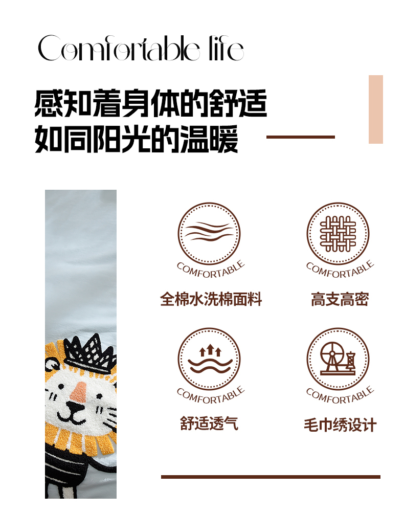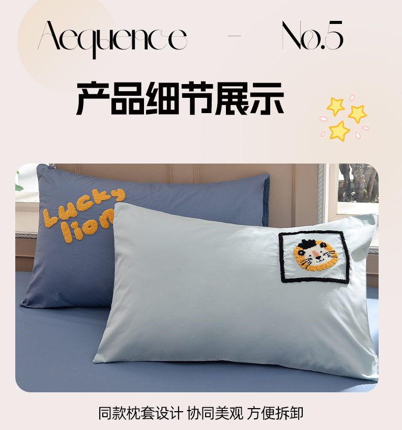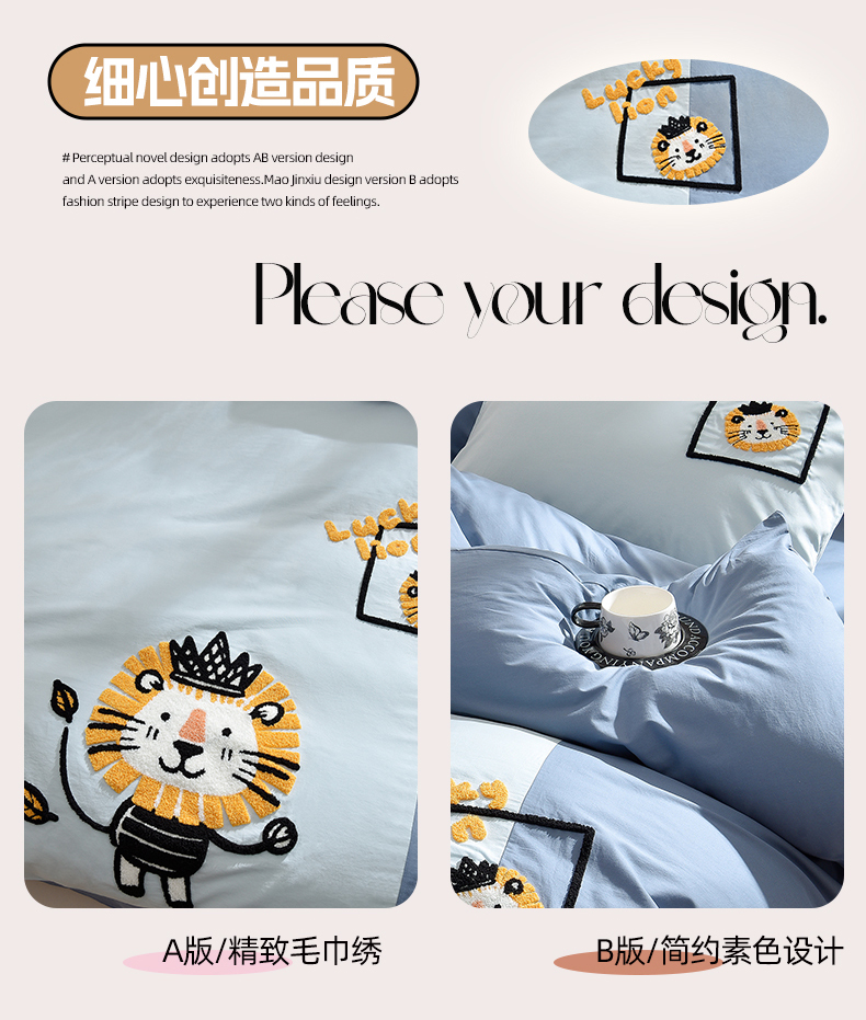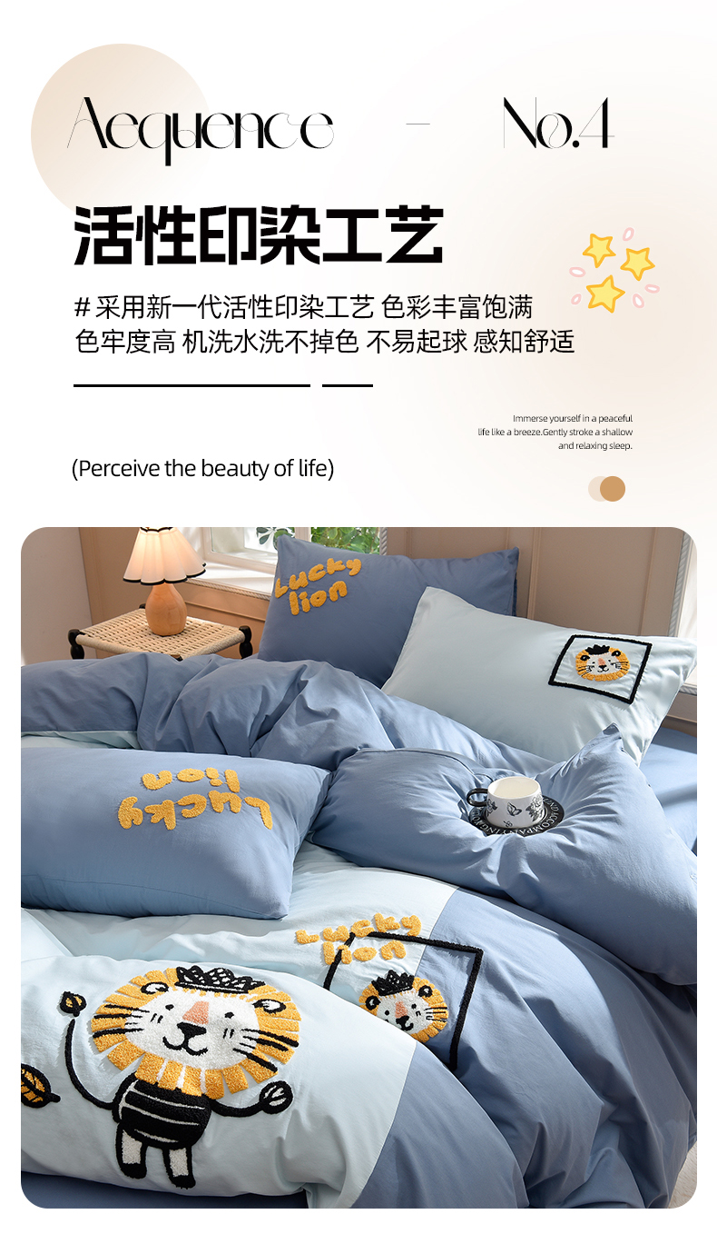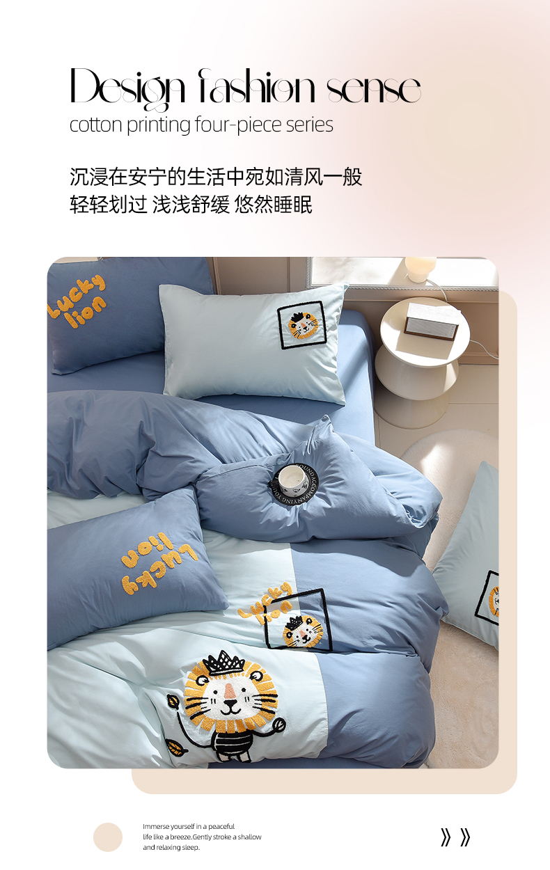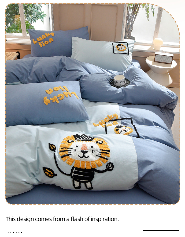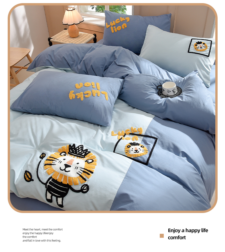 当前位置: 91家纺网 > 商品网购 > 床品套件 > 四件套 > 水洗棉四件套 > 炫拼家纺 2026新春款萌系A类全棉纯棉40支水洗棉毛巾绣四件套 狮子王