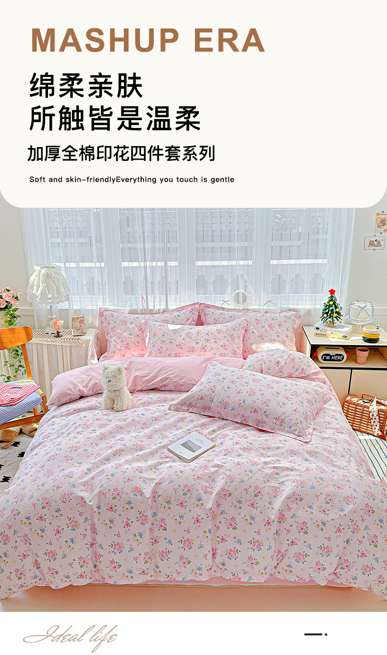 当前位置: 91家纺网 > 商品网购 > 床品套件 > 四件套 > 全棉普通四件套 > 恩泽家纺 2025新款全棉纯棉12868喷气印花系列四件套-第二批 田园小花