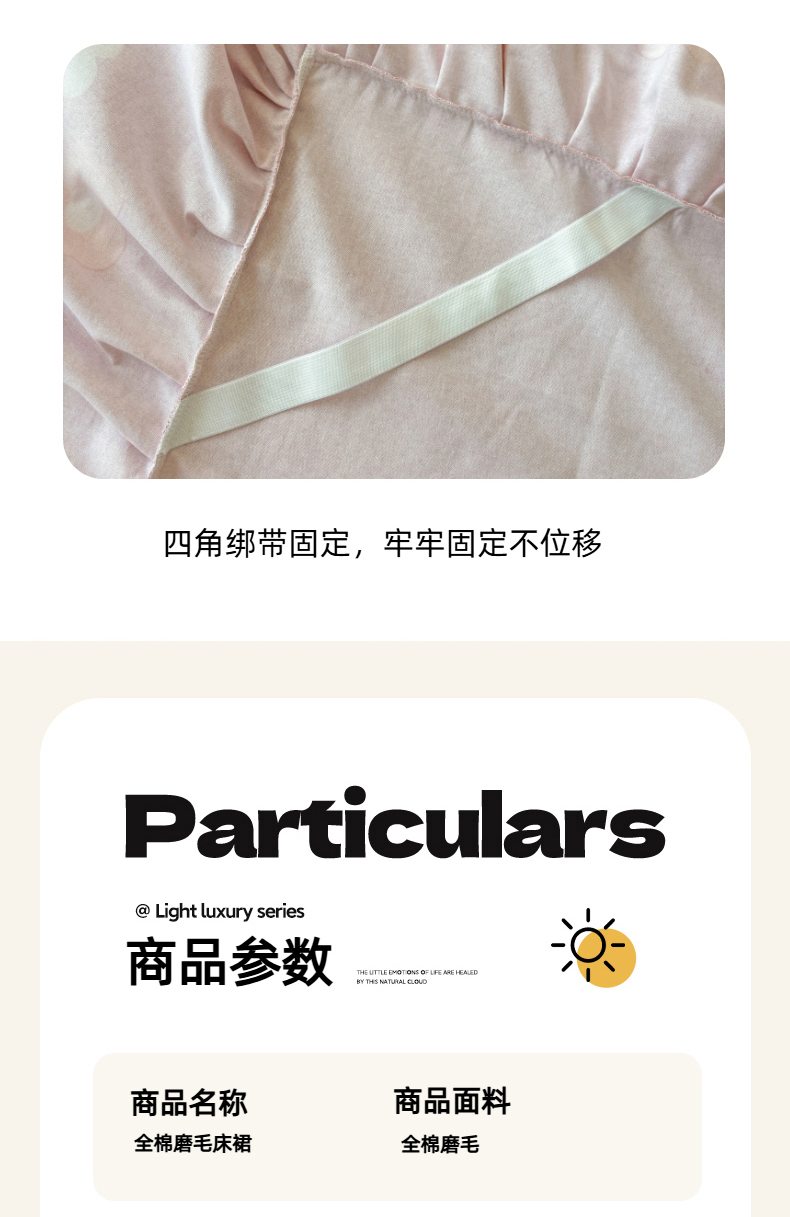 • 91家纺网 家纺一手货源 找家纺 (总)缦彩 2025新款纯棉水洗棉床裙床罩单件全棉防滑防尘保护套床单三件套,艾米-粉,艾米-咖,艾米-兰,多芬桔,扶摇粉,欧风粉,品格-绿,奇兰灰,深情桔