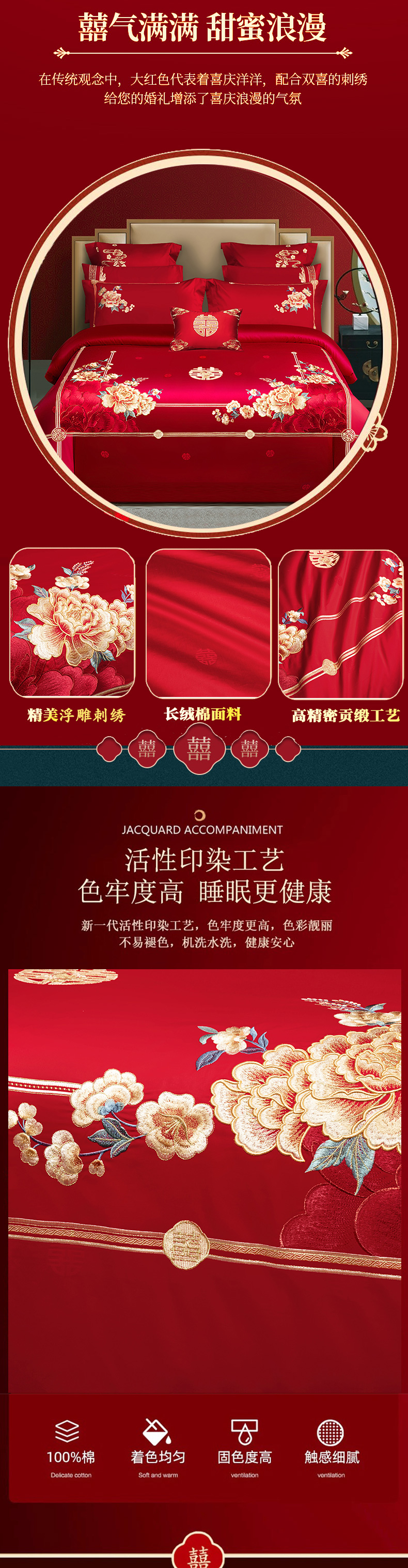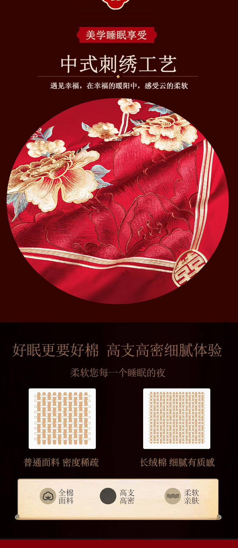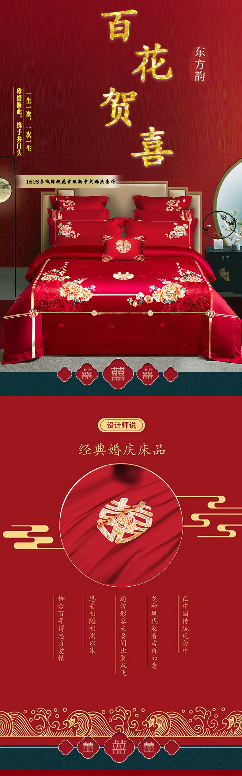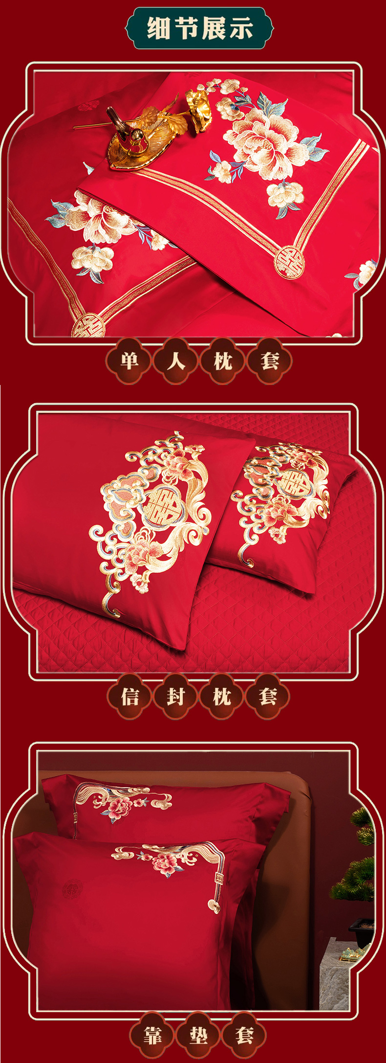 当前位置: 91家纺网 > 商品网购 > 床品套件 > 多件套 > 多件套 > 柏拉图 2025新款100s长绒棉贡缎提花重工艺刺绣婚庆四件套多件套 百花贺喜