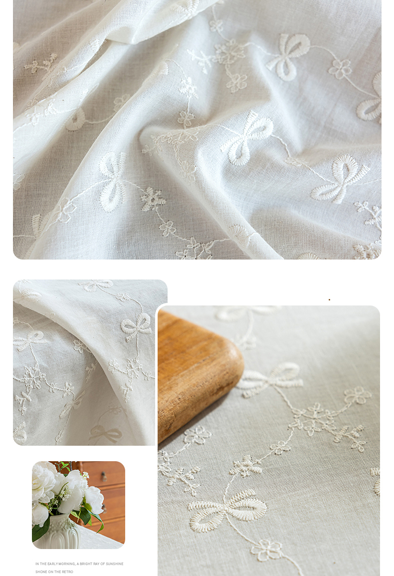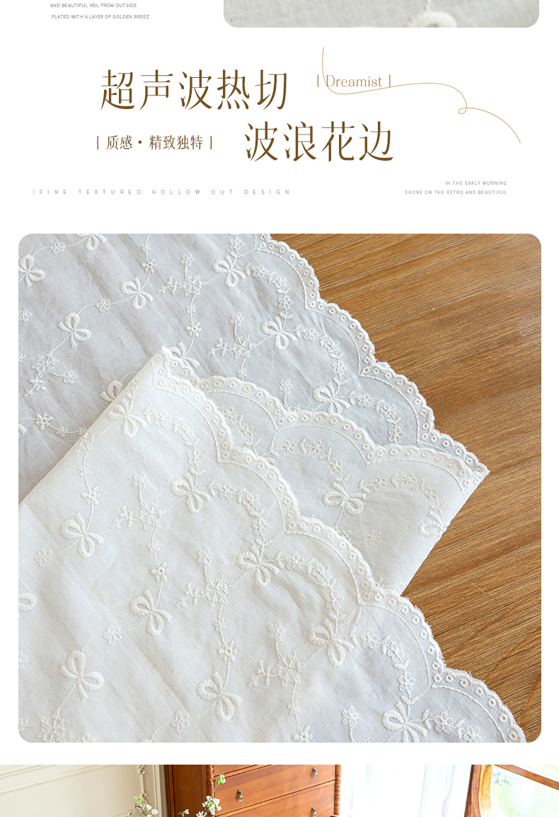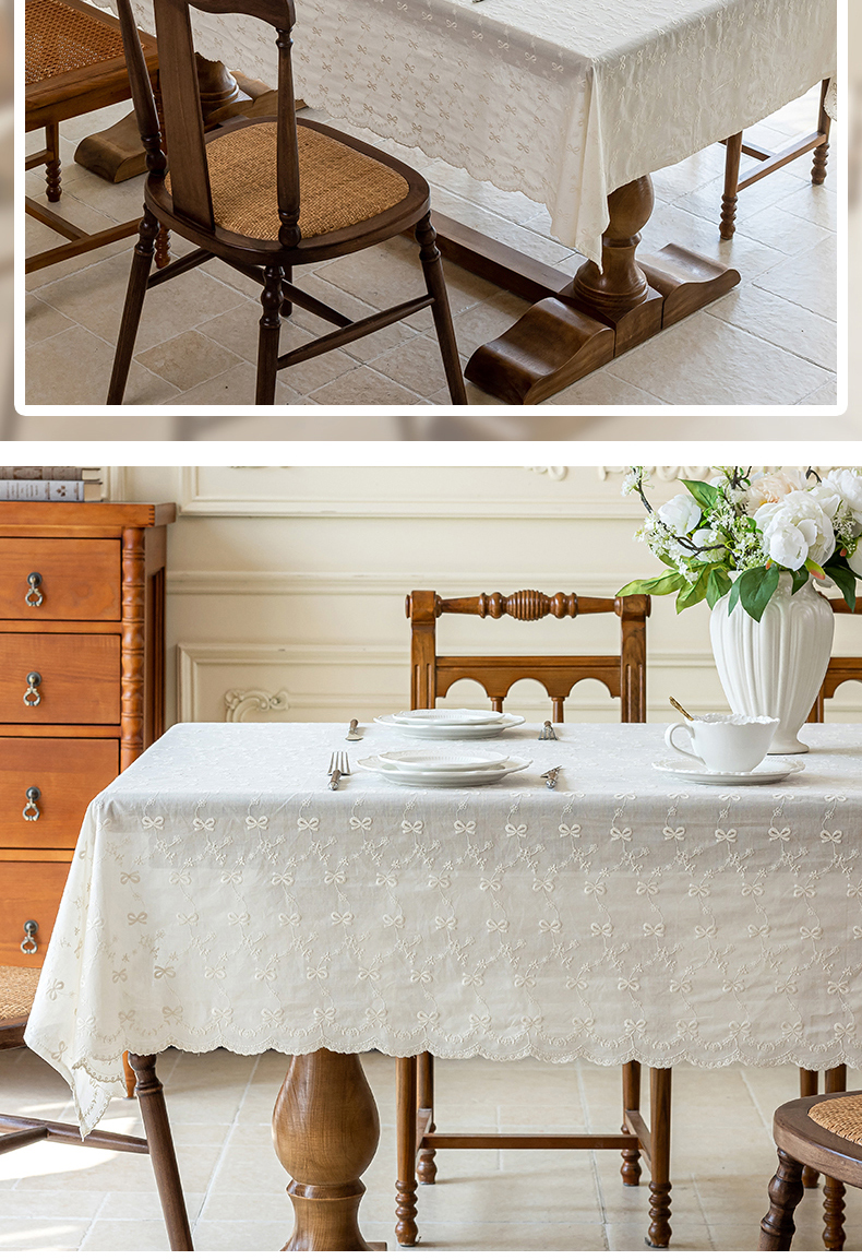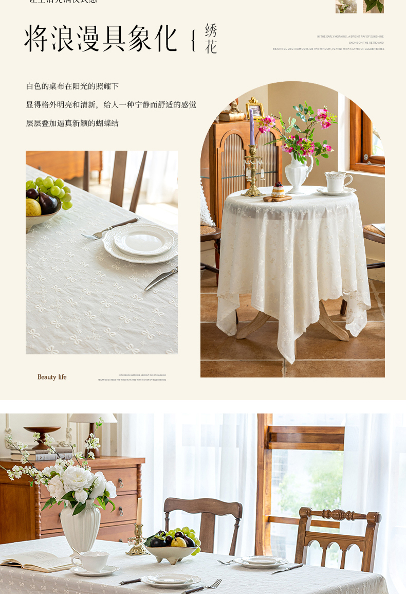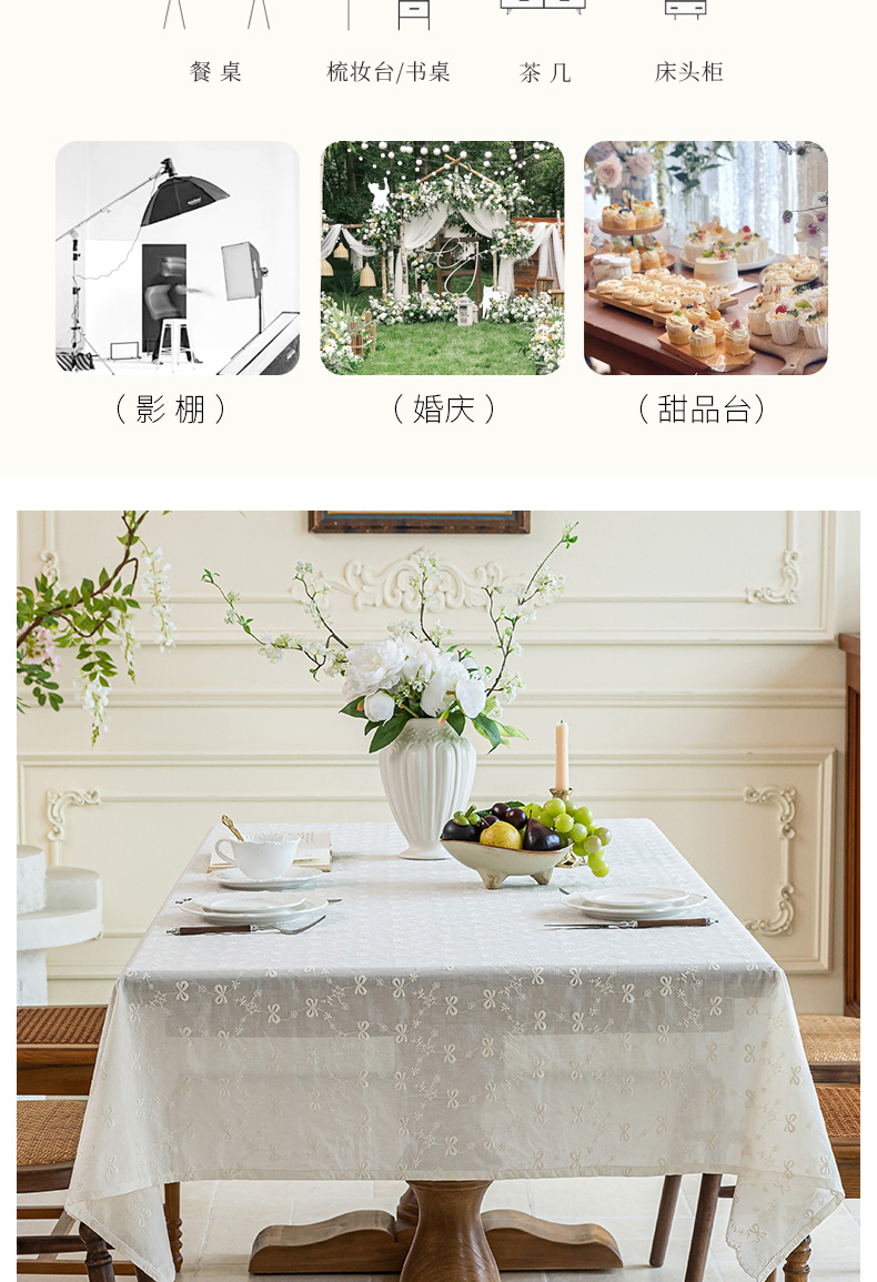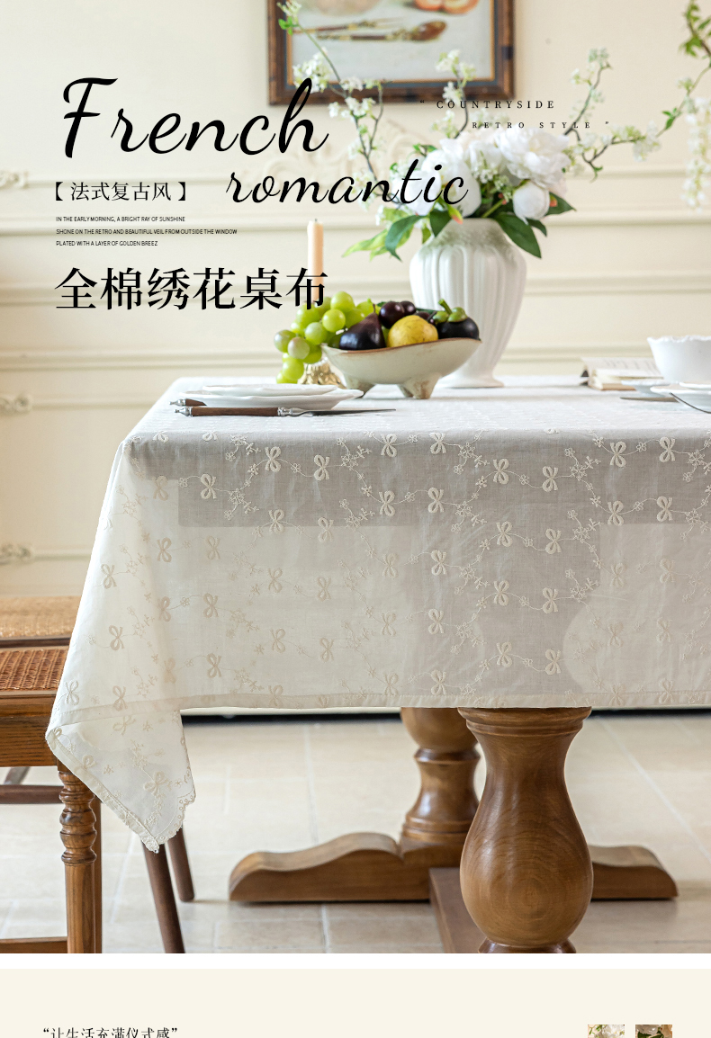 商品名称:南通大梧纺织 2025新款全棉纯棉绣花蝴蝶结桌布 蝴蝶结-方桌