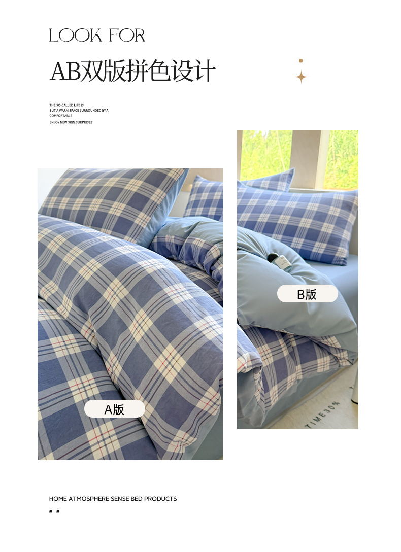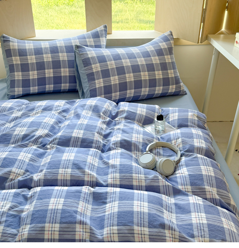 (总)晚爱家纺(原晚安家居) 2025无印风四件套经典格子超柔水洗棉四件套,大粉格,大蓝格,灰白格,灰粉格,小蓝格,小绿格