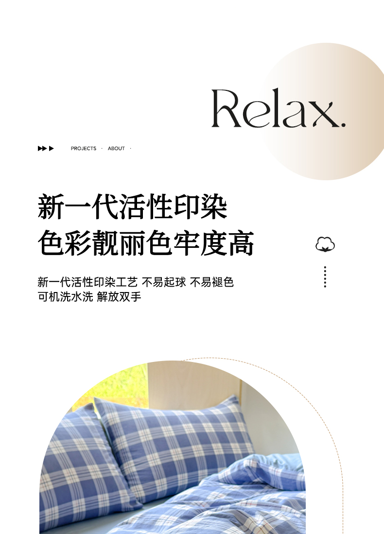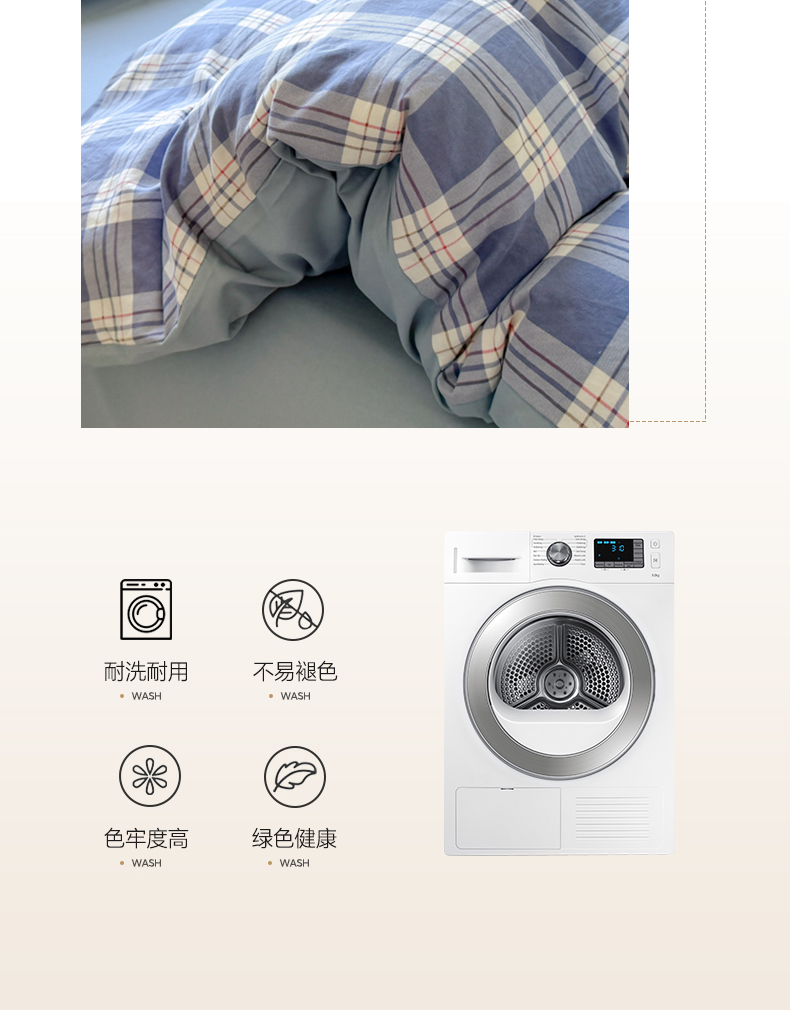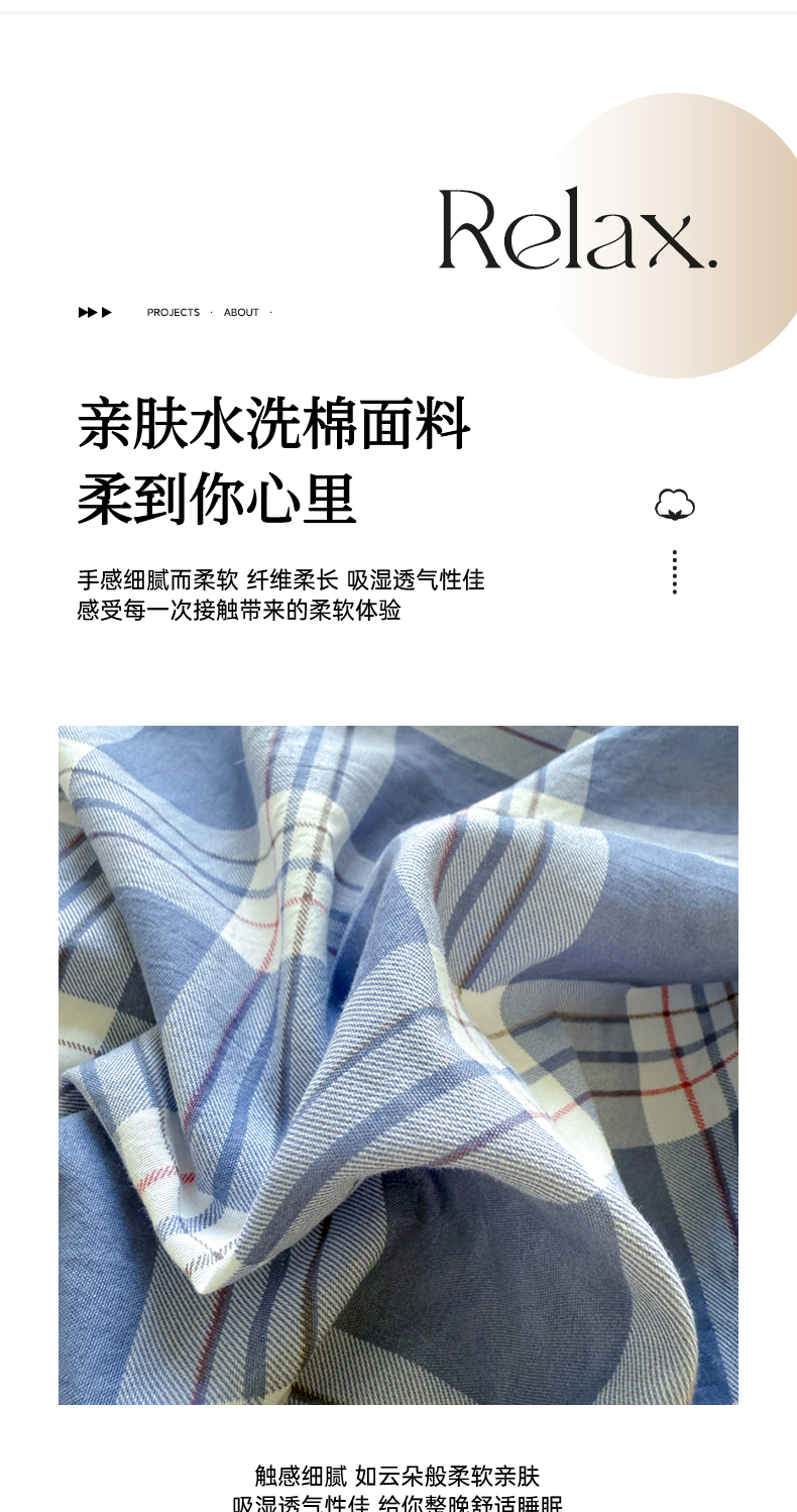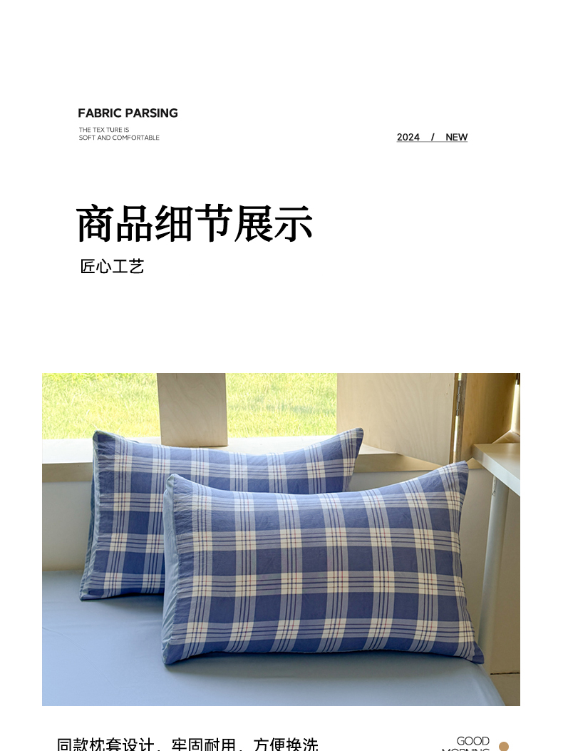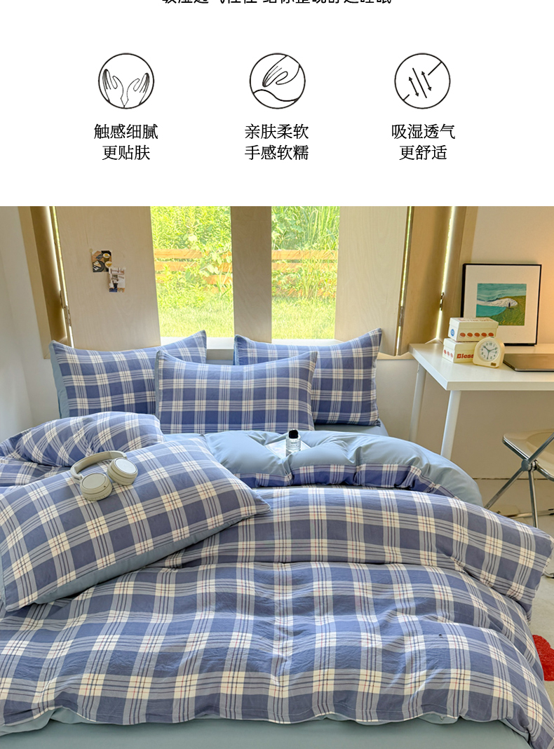 商品名称:(总)晚爱家纺(原晚安家居) 2025无印风四件套经典格子超柔水洗棉四件套
