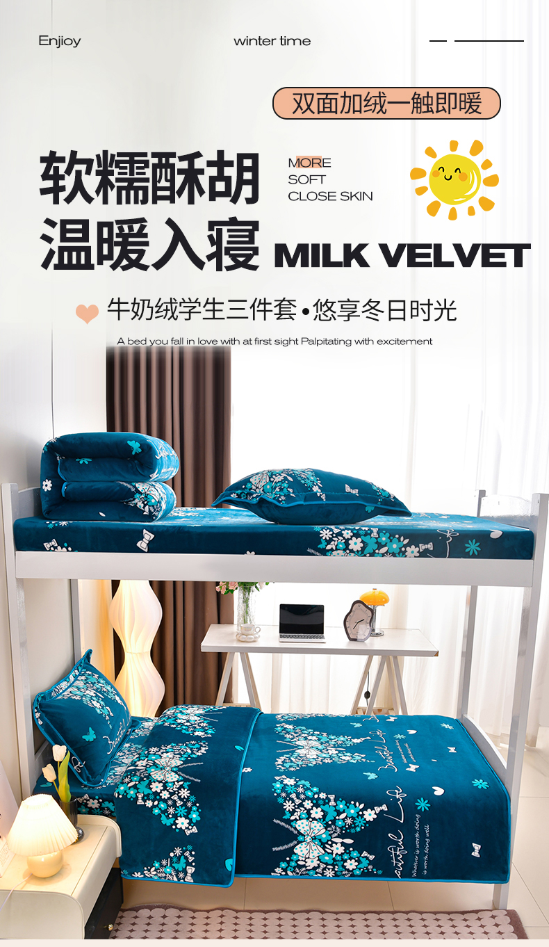 (总)缘莉娜家纺 2025新款牛奶绒印花学生宿舍三件套上下铺三件套,人生格言,致青春,抱抱熊,玫瑰的故事,海阔天空,兔兔乐园,家和万事兴,翩翩起舞,鹿上时空,甜蜜蜜,一路相伴,如花似锦