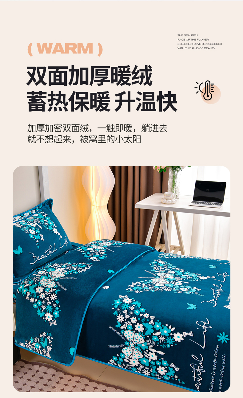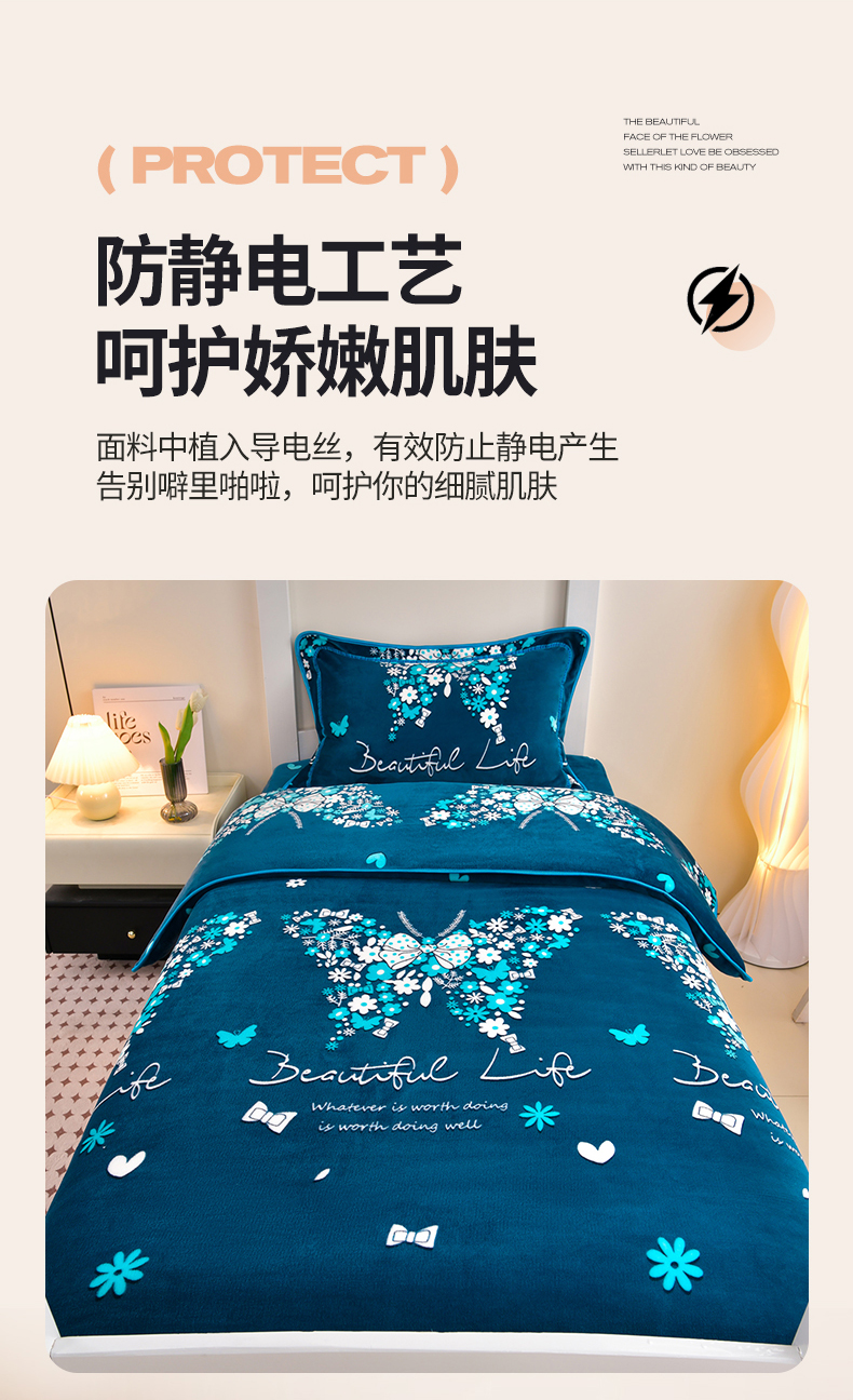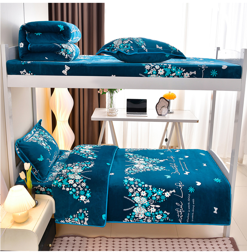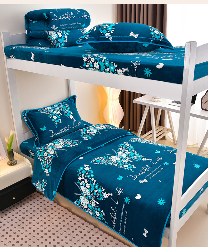 商品名称:缘莉娜家纺 2025新款牛奶绒印花学生宿舍三件套上下铺三件套 翩翩起舞