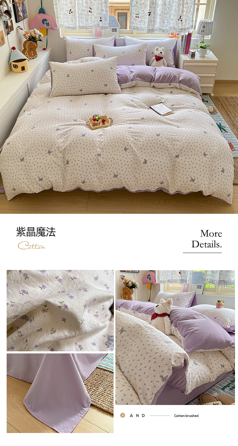 (总)希丞家居 2024新款超柔泡泡棉水洗棉花边四件套,春野,繁花,花青,梦语,绵枝,蔷薇,夏瑾,紫韵