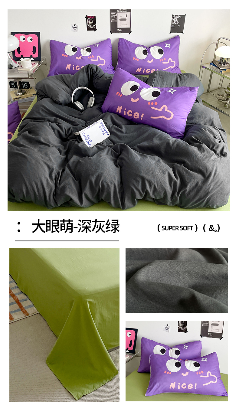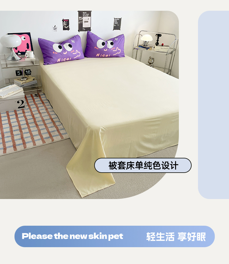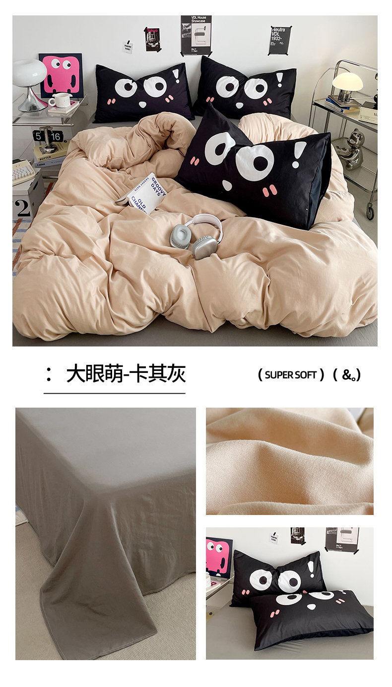 当前位置: 91家纺网 > 商品网购 > 床品套件 > 四件套 > 水洗棉四件套 > 优卡迪家纺馆 2025新款A类亲肤水洗棉大眼萌纯色混搭四件套 大眼萌-天蓝黄