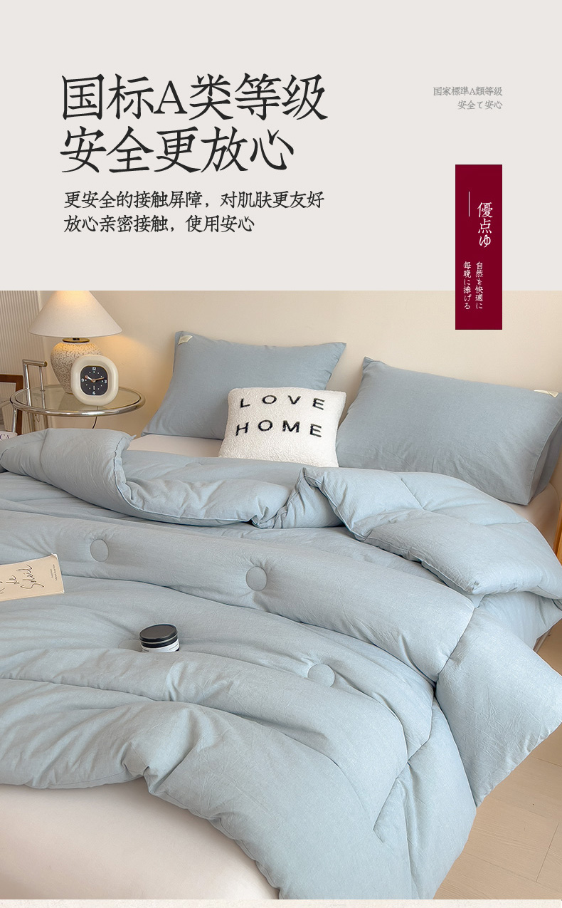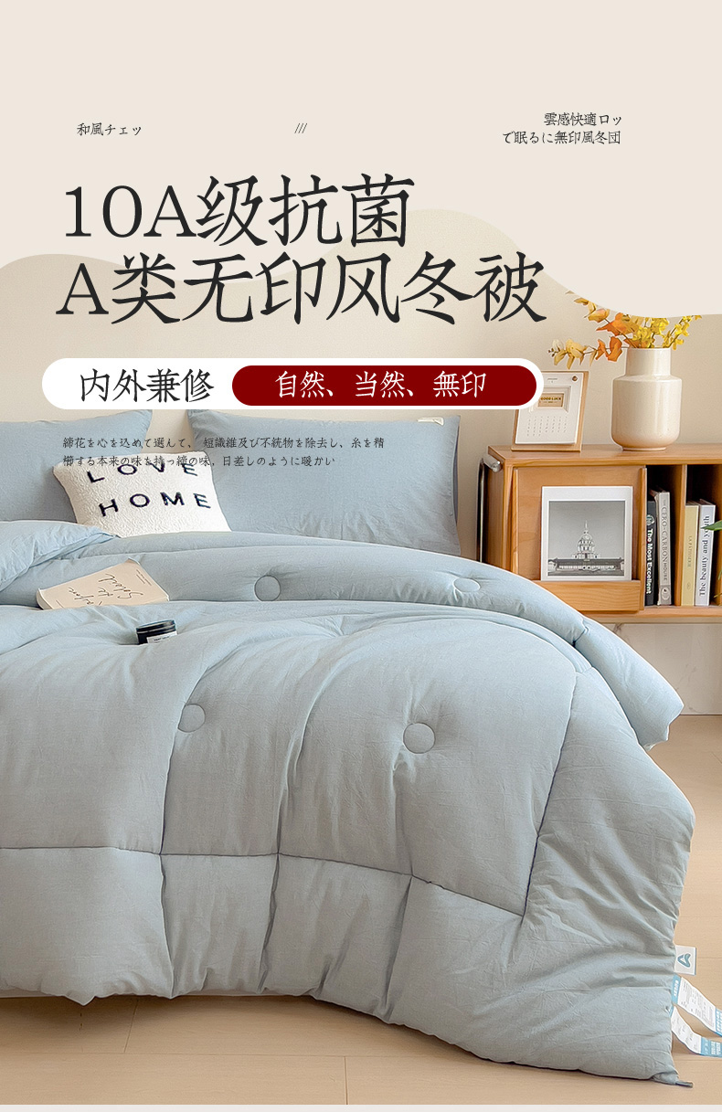 • 91家纺网 家纺一手货源 找家纺 宝士康家纺 2025新品10A抗菌无印风学生季春秋被/被芯/跨境/外贸 优雅蓝