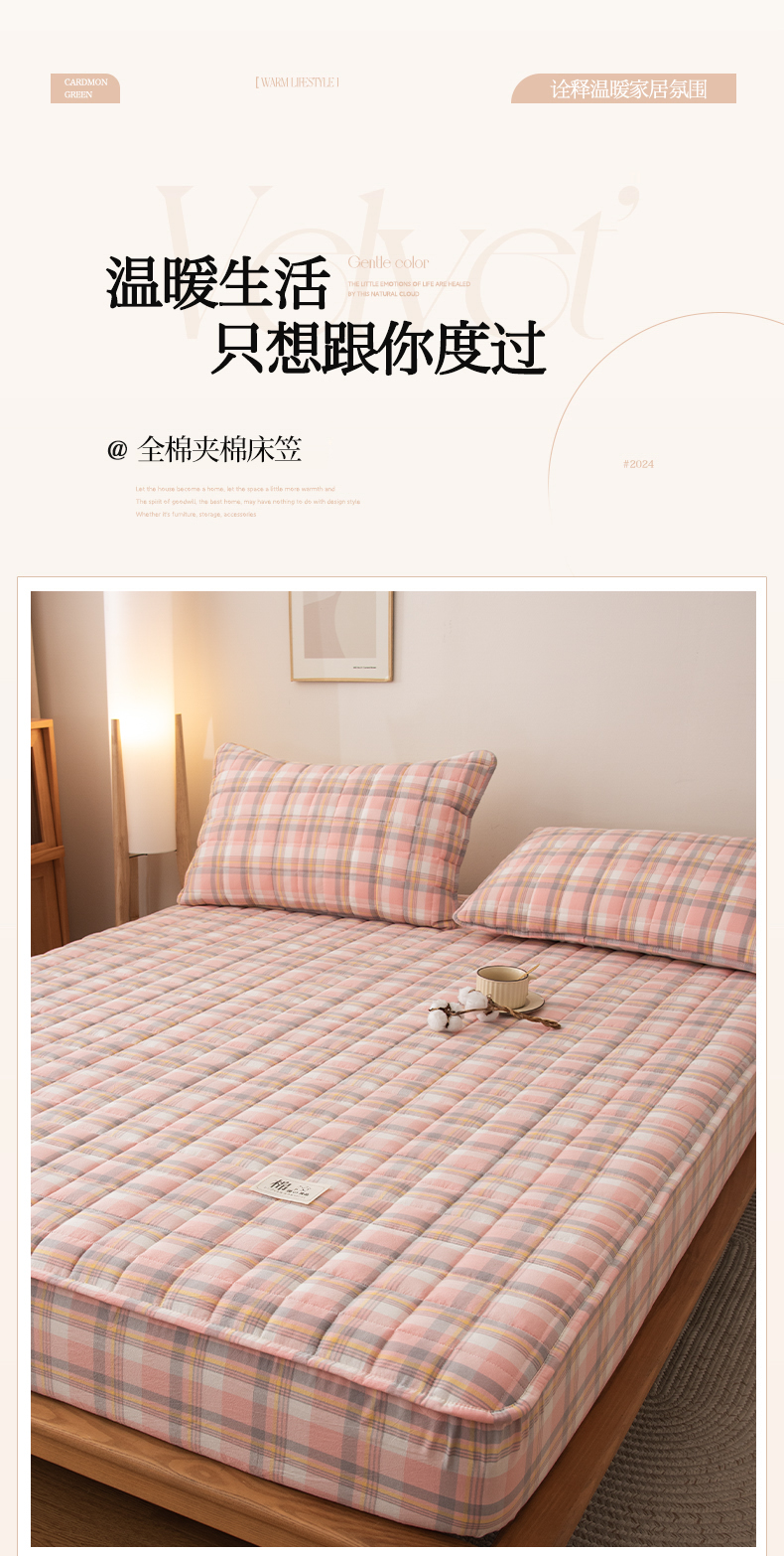 (总)萌飞 2025新款A类全棉纯棉色织抗菌夹棉床笠单床笠单品床笠单件床笠同款枕套一对,高级灰,灰小格,卡其色,蓝小格,莫妮卡-粉,莫妮卡-蓝,奶油白,少女粉