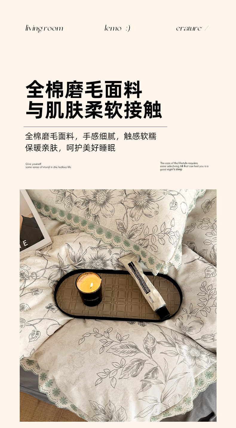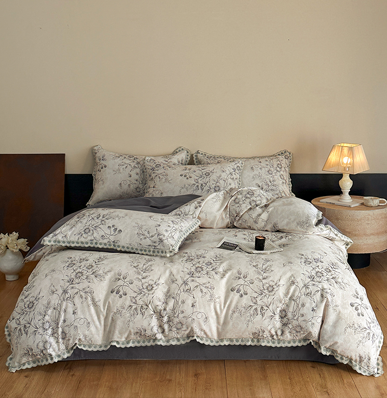 商品名称:(总)帛美家纺 2025年新款全棉纯棉花边印花磨毛四件套