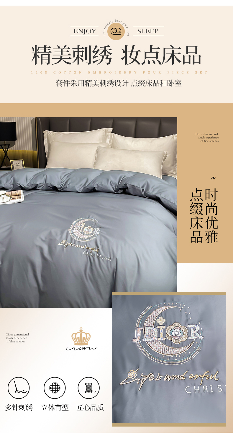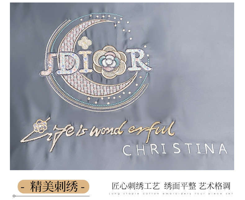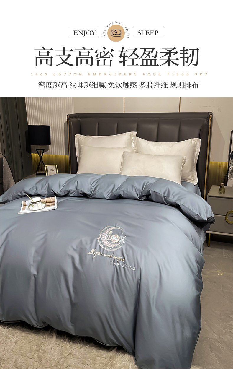 商品名称:艾迪尚家纺 2025新款120支刺绣长绒棉四六件套(新拍)-单被套 山茶花-绅士灰