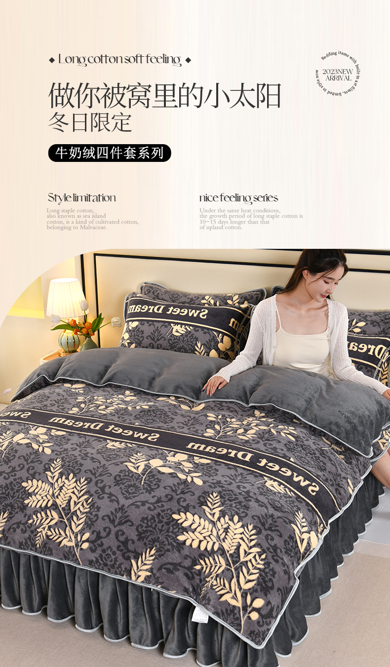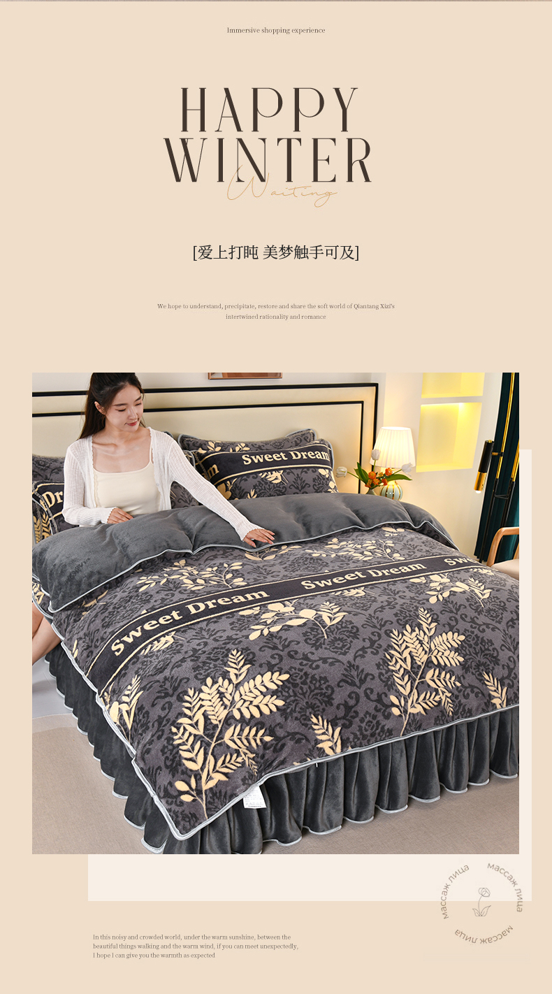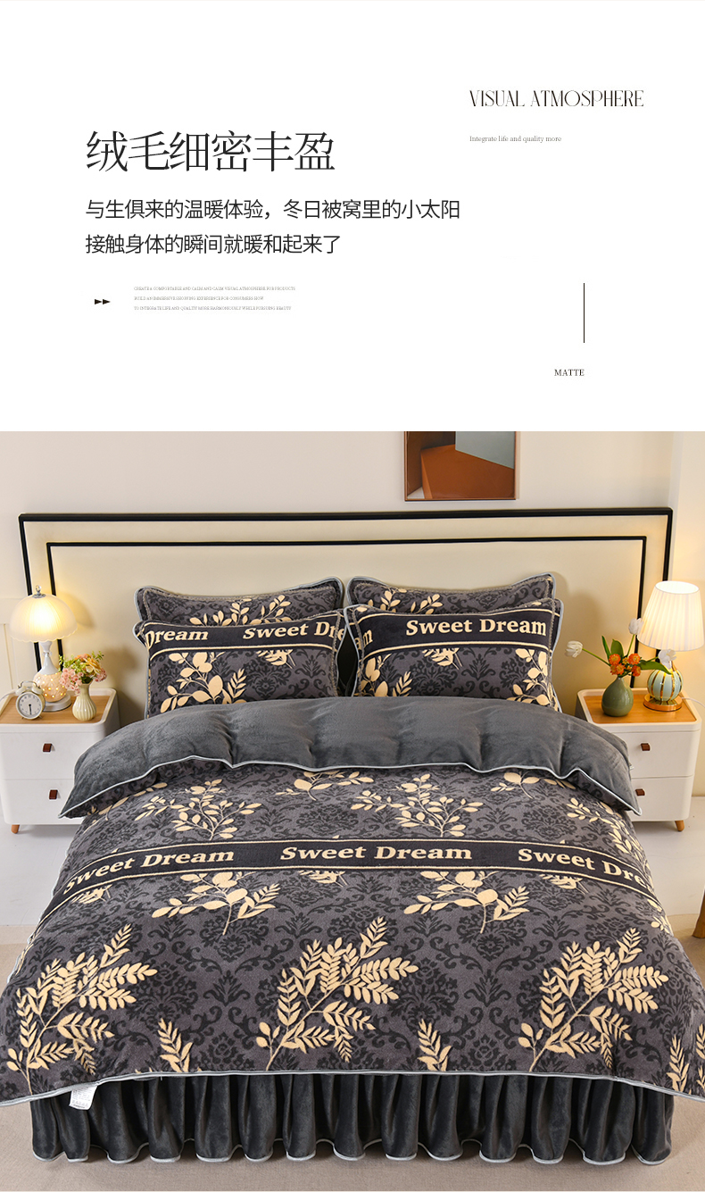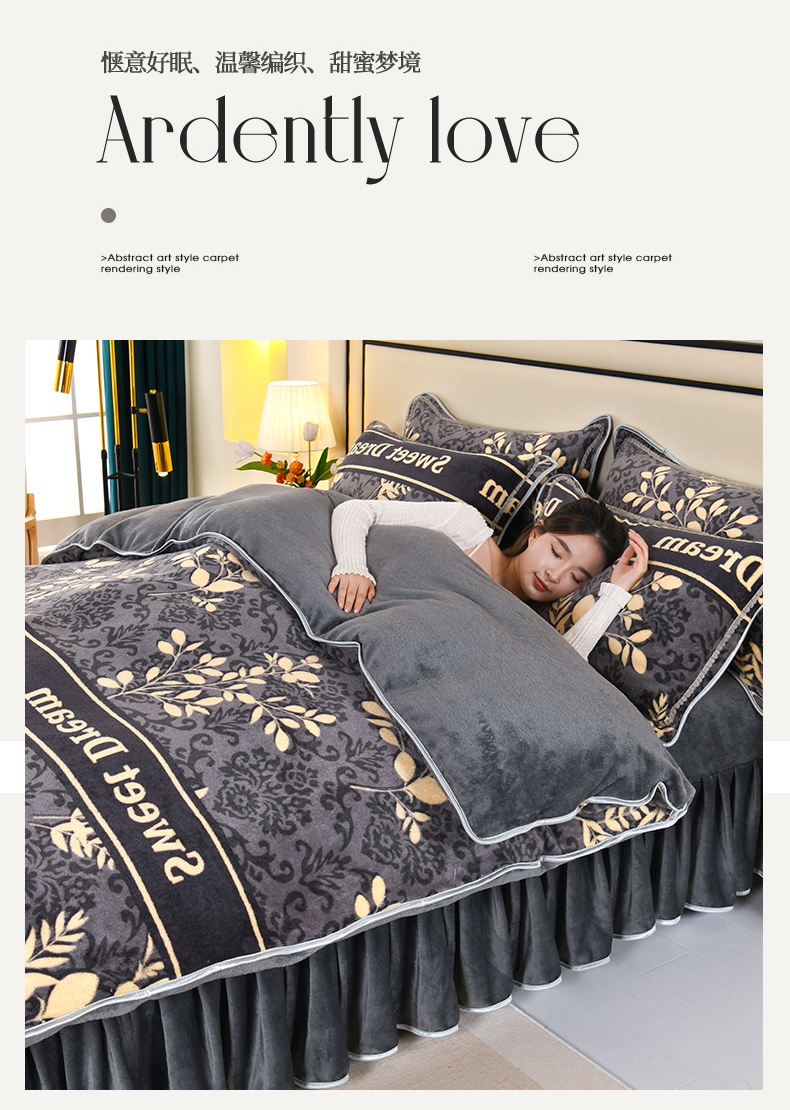 (总)绒品壹家 2025新款电商直播爆款高克重5斤牛奶绒金貂绒印花床裙款三件套四件套