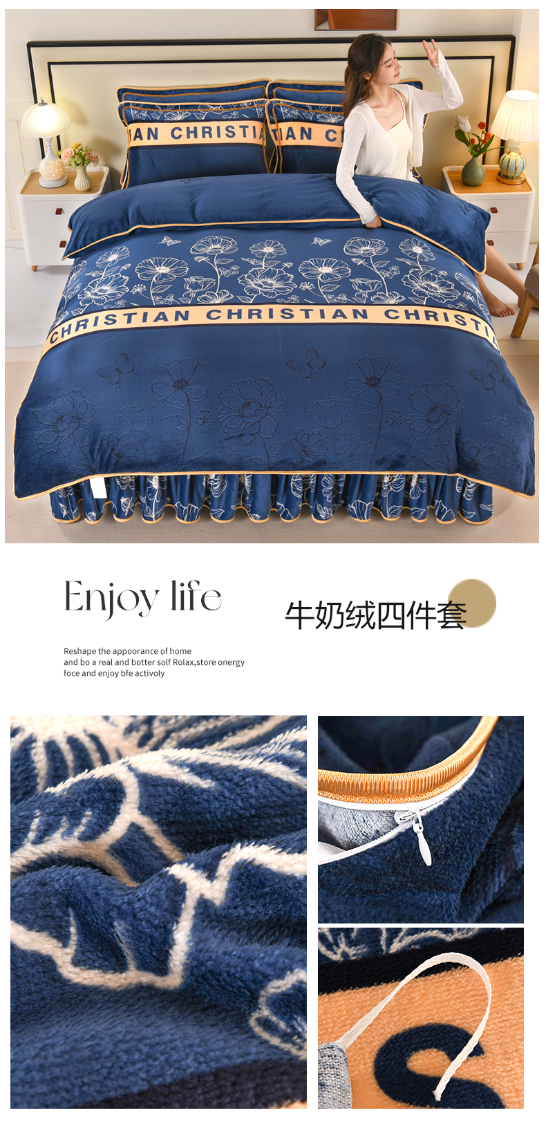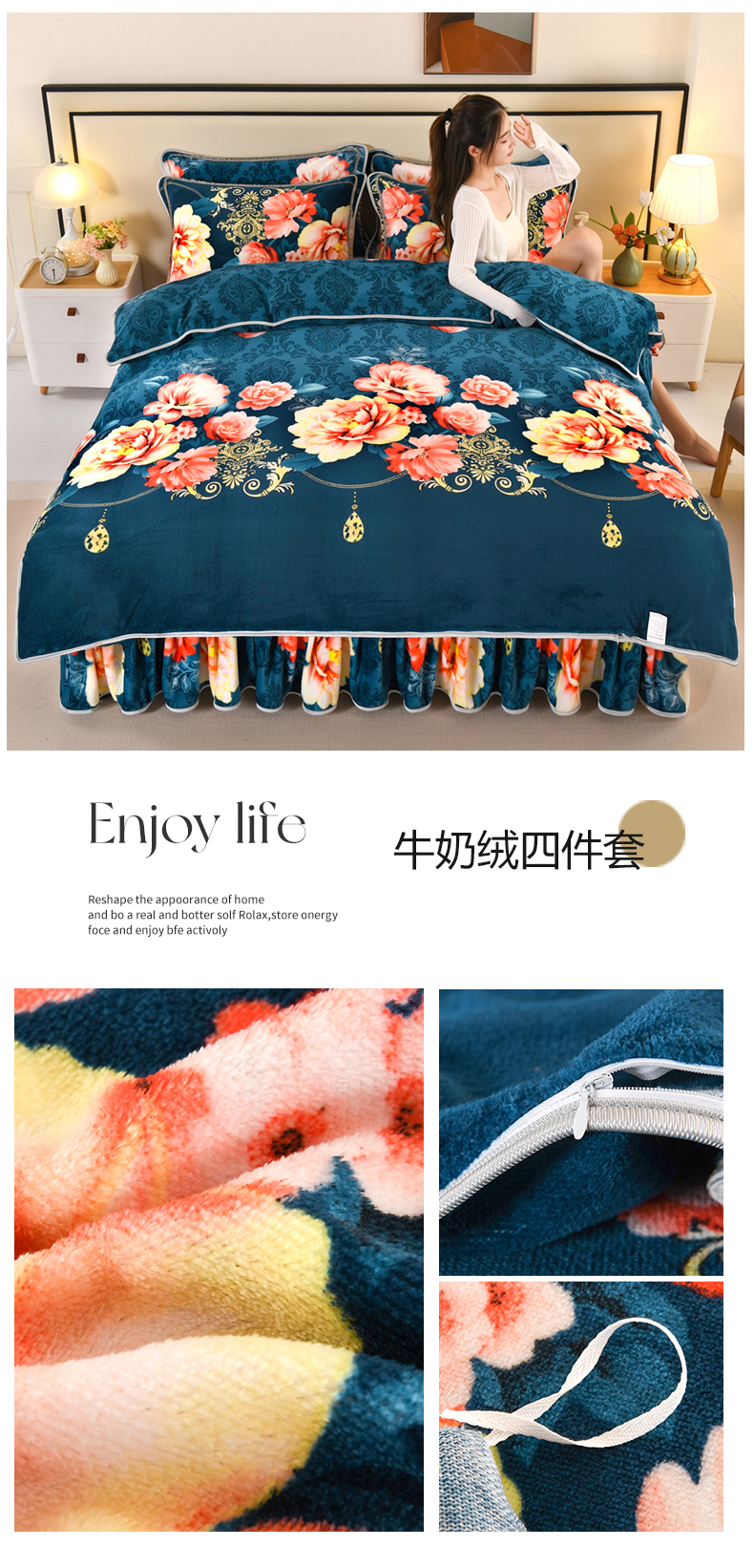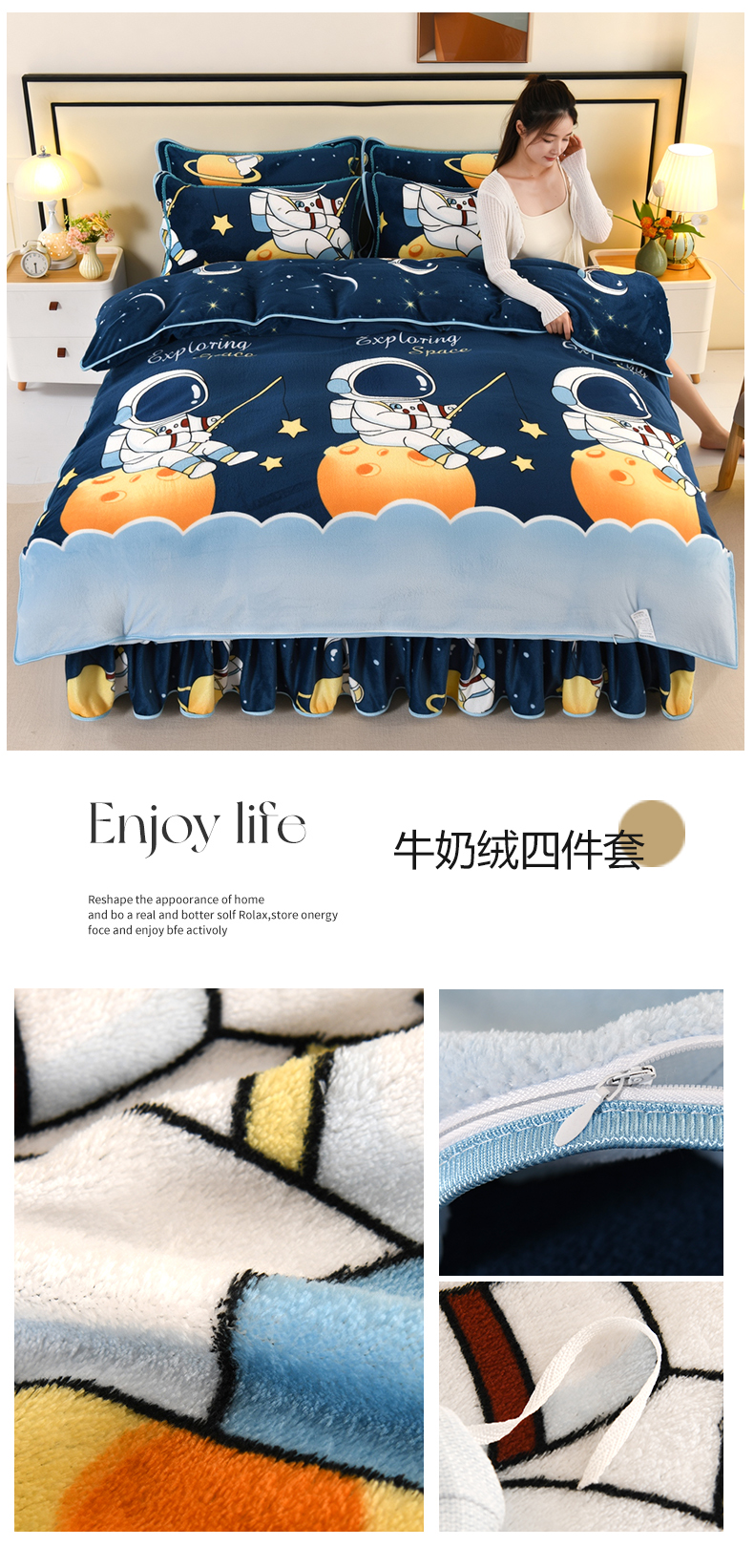 (总)绒品壹家 2025新款电商直播爆款高克重5斤牛奶绒金貂绒印花床裙款三件套四件套,发财树,粉恋,花都,花好月圆,花花绿绿,花开富贵,昙花一现,花满庭,蓝格子,莲鲤嬉戏,暖意绒绒,欧式情怀,蒲公英,棋盘格,钱兔似锦,荣华富贵,盛世花开,时尚绽放,素色花卉,相伴一生,星空森林,幸福满园,叶叶思语,一见倾心 蓝,宇航员,郁金香,绿野仙踪,欢乐兔黄,三生三世,雅韵
